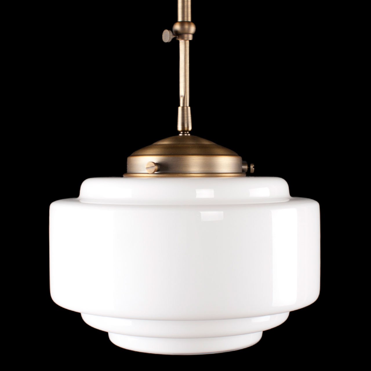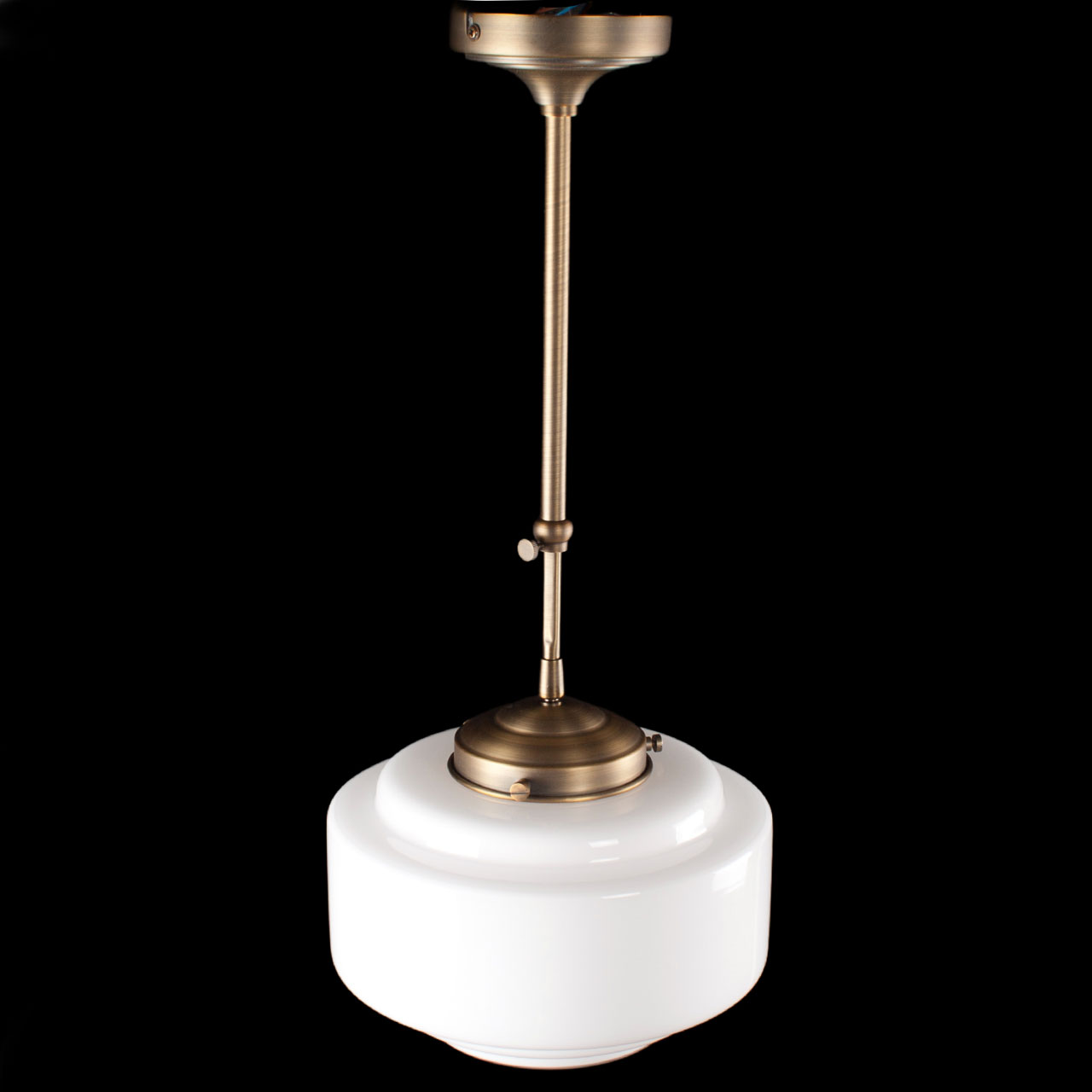 Verstelbare Hoogte: Dankzij de verstelbare bronzen pendel en het opaal witte glas kunt u de hoogte van de lamp naar wens aanpassen, waardoor deze geschikt is voor verschillende ruimten en toepassingen.