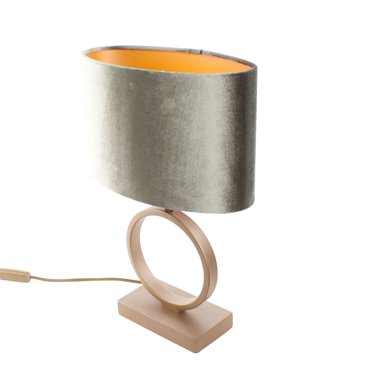 Deze bronskleurige tafellamp uit de Sienna-serie is klein van formaat, maar groots in stijl. Met een hoogte van 38 cm en een ovale kap van 25 cm breed, 13 cm diep en 16 cm hoog, is dit de perfecte lamp voor nachtkastjes, smalle bijzettafels of dressoirs. De combinatie van warme bronskleur en zachte velvet in olijfgroen geeft deze lamp een rustige, luxe uitstraling.