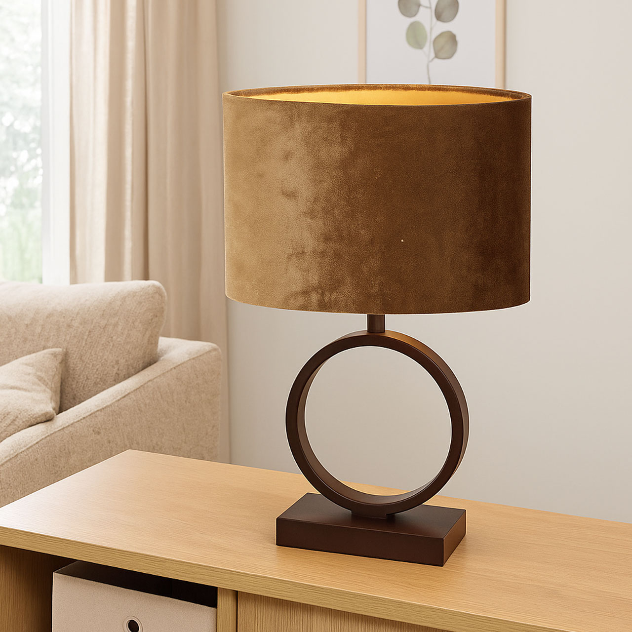 De bruine cacao kleurige tafellamp Sienna met Coffee on Gold kap is een compacte sfeermaker met een luxe uitstraling. Perfect voor wie houdt van warme bruintinten, een zachte lichtgloed en stijlvol design.