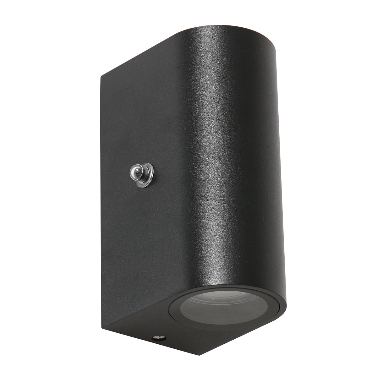 Compacte buitenlamp met een zwarte moderne kleur geeft zowel van de onderkant, als de bovenkant licht. De behuizing is gemaakt van aluminium, afgewerkt met een glasplaat en voorzien van een light sensitive sensor. De krachtige lichtstraal verlicht het huis en tuin op een efficiënte manier. De zwarte lamp wordt inclusief 2 GU10 (345 Lumen, 2700 Kelvin) lichtbronnen geleverd. De compacte muurlamp heeft een diepte van 9 centimeter en is 15,5 centimeter hoog. Deze buitenlamp beschikt over een IP54 waarde. Dit betekent dat hij spatwaterdicht en stofvrij is.