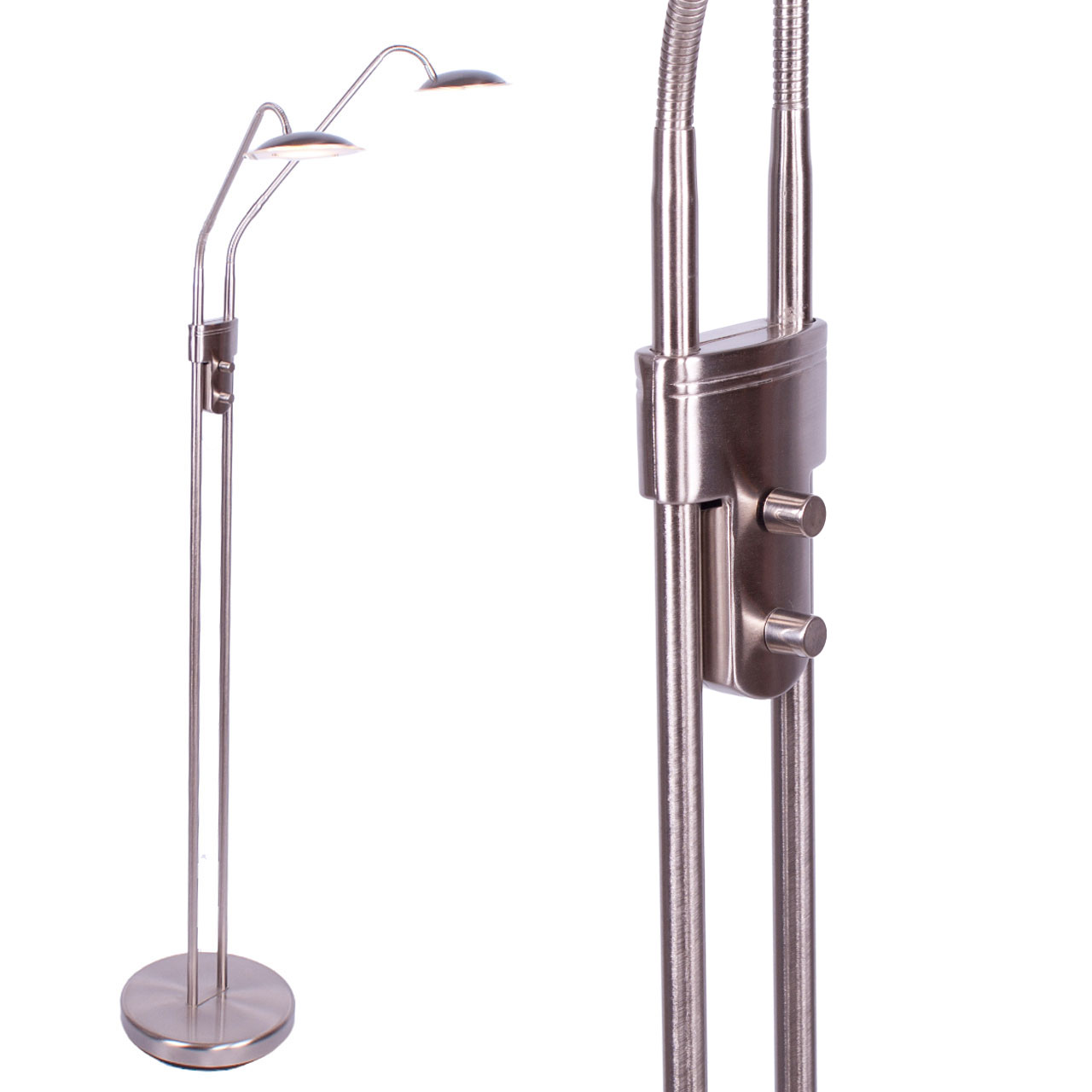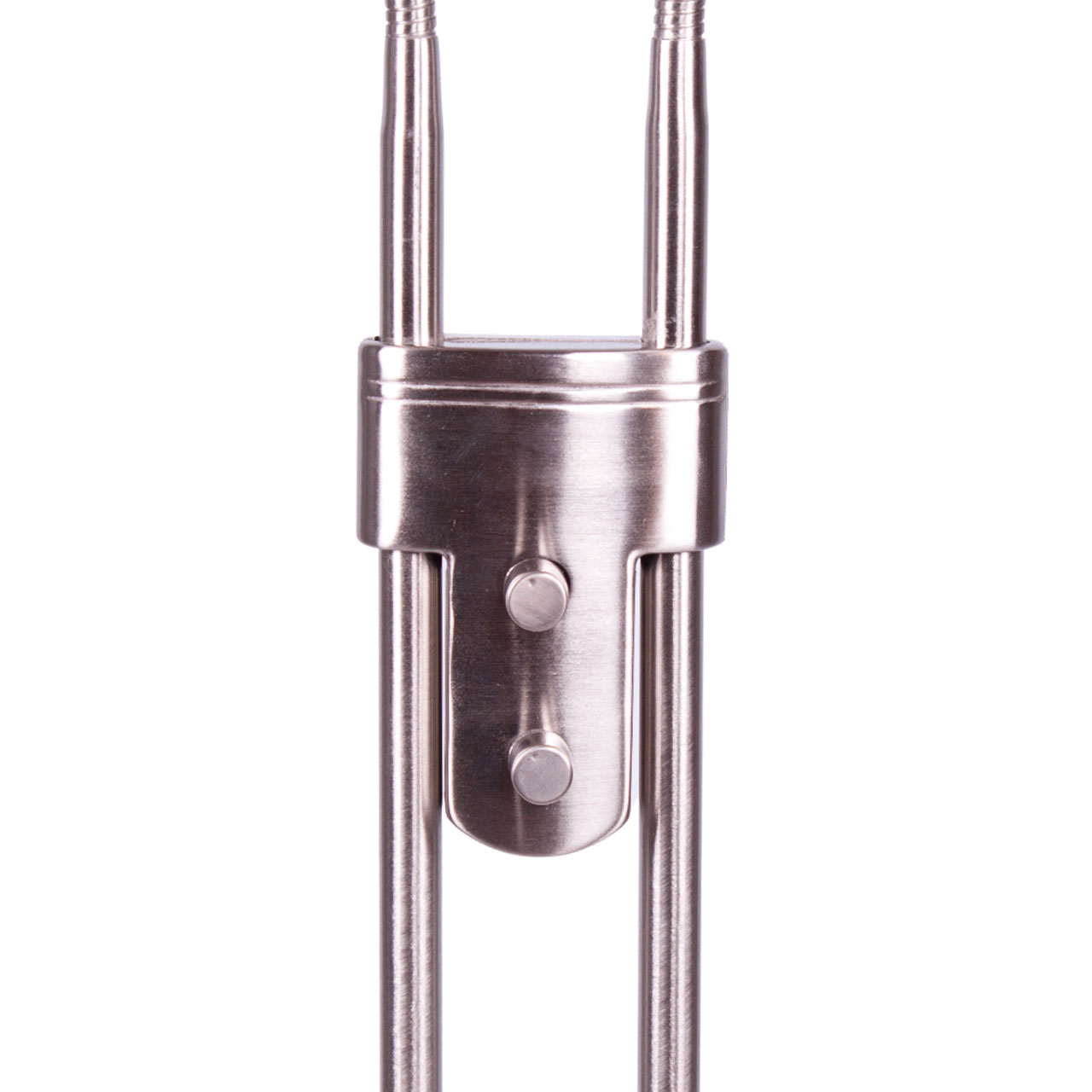 De dubbele staalkleurige leeslamp is een elegante en functionele verlichtingsoplossing die perfect is voor het creëren van een gezellige leeshoek in je huis. Met zijn moderne ontwerp en hoogwaardige materialen voegt deze leeslamp een vleugje stijl toe aan elke ruimte.