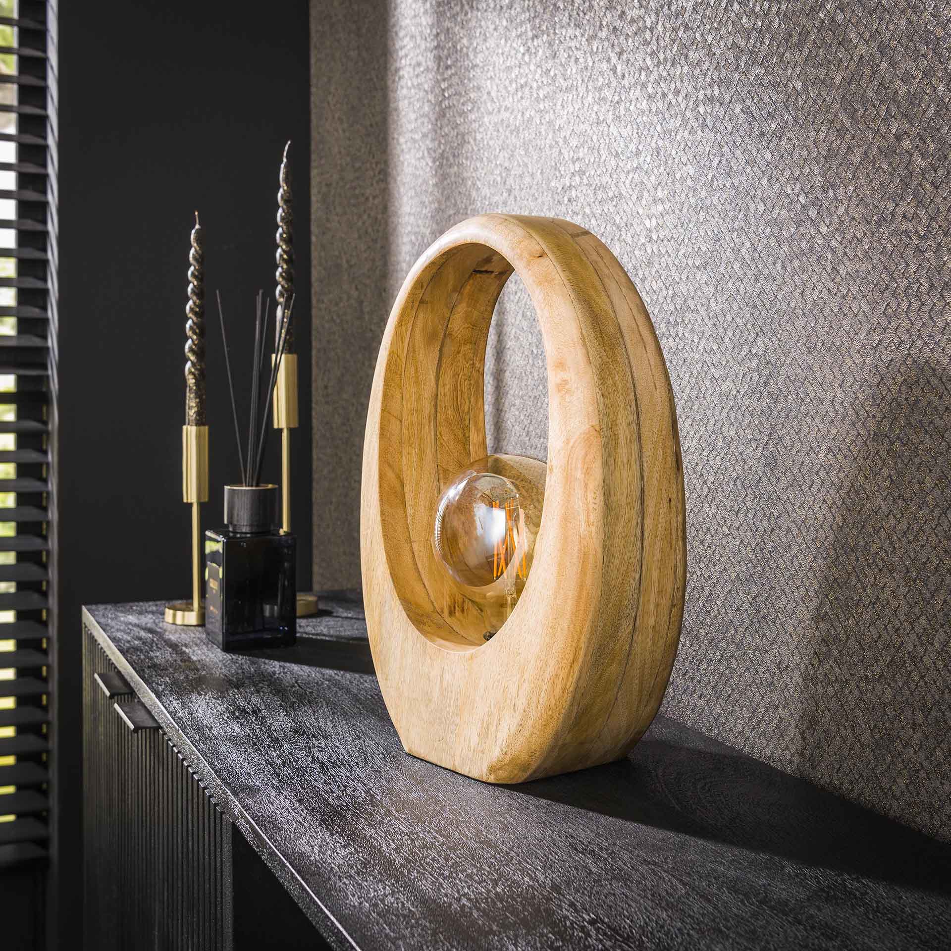 Home / Binnenverlichting / Tafellampen / Landelijke tafellampen / Houten tafellamp Arch wood large | Massief mango naturel