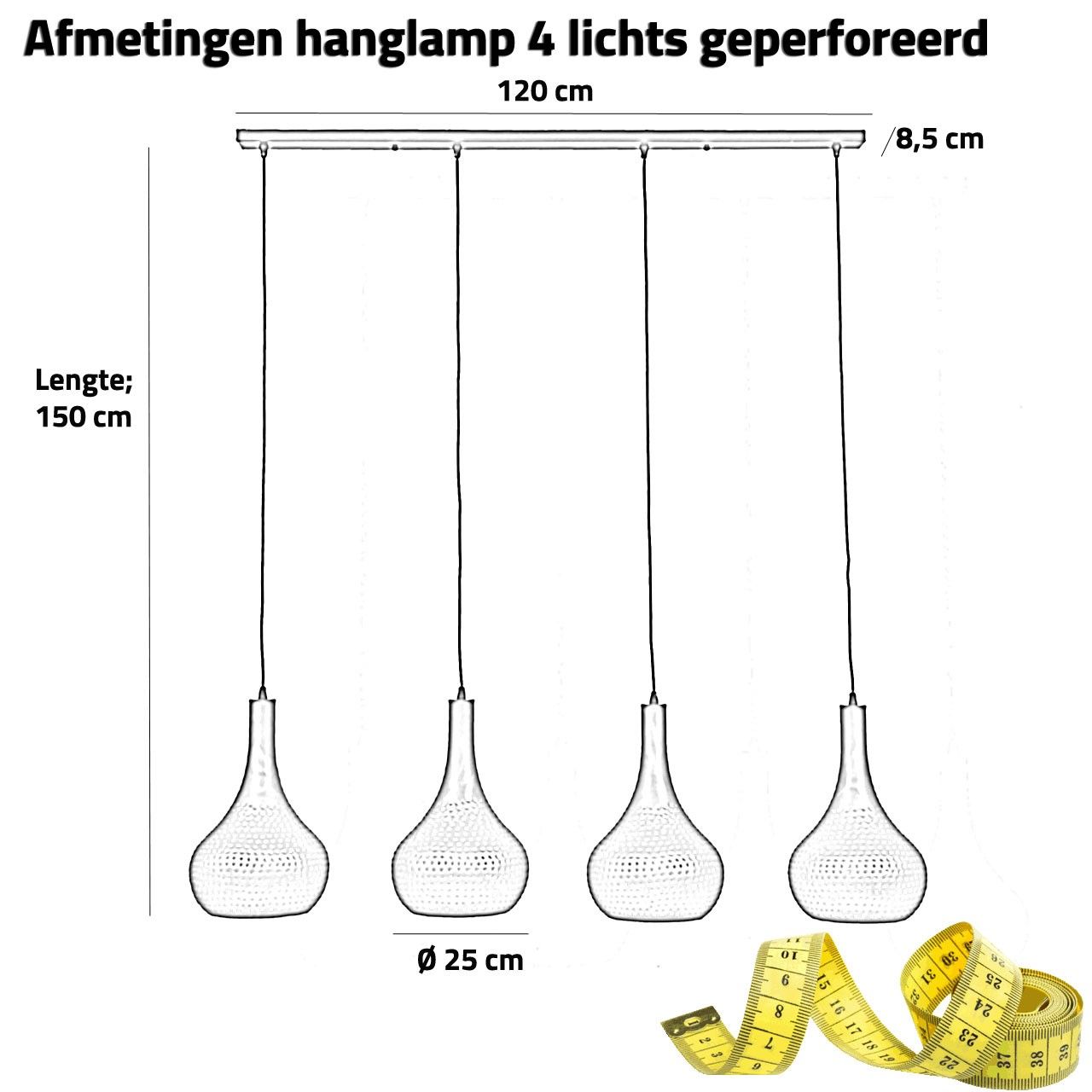 Met zijn 4 lichtpunten biedt deze hanglamp voldoende verlichting voor elke gelegenheid. Of je nu gezellig wilt dineren met vrienden of rustig een boek wilt lezen, met deze lamp creëer je altijd de juiste sfeer. De combinatie van direct en indirect licht zorgt voor een aangename verlichting die niet verblindt, waardoor je optimaal kunt genieten van je ruimte.