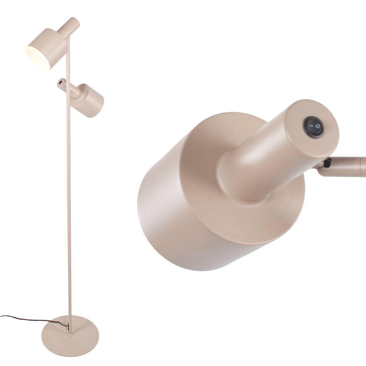 De lamp heeft een hoogte van 145 cm, wat betekent dat deze ideaal is voor sfeerverlichting naast de bank of in een gezellige hoek. Daarnaast zijn de twee lampenkoppen onafhankelijk verstelbaar, zodat je het licht kunt richten waar je het nodig hebt. Dit maakt de lamp geschikt voor het creëren van zowel gerichte verlichting als een zachte, uitnodigende sfeer. Bovendien zijn de schakelaars handig aan de achterkant van elke kop geplaatst, waardoor het bedienen van de lamp eenvoudig is.