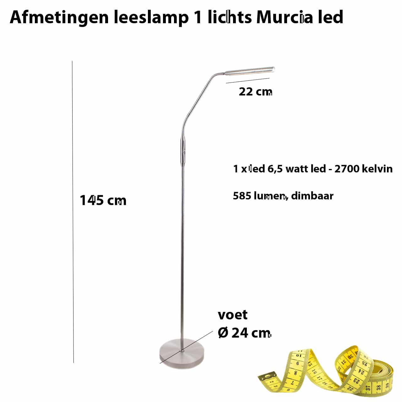 Op zoek naar een functioneel, onopvallend leeslampje? Dan is deze vloerlamp wellicht een goed idee? De leeslamp hoort bij de serie Murcia leeslampen. Deze lamp is zeer praktische voor diverse toepassingen. Bijvoorbeeld naast een stoel of bed. Je kunt het licht goed richten en met de ingebouwde dimmer in de gewenste lichtsterkte zetten. Het licht wordt verdeeld over een 20 cm lange led. Hierdoor is het licht rustig en evenredig verdeeld.
