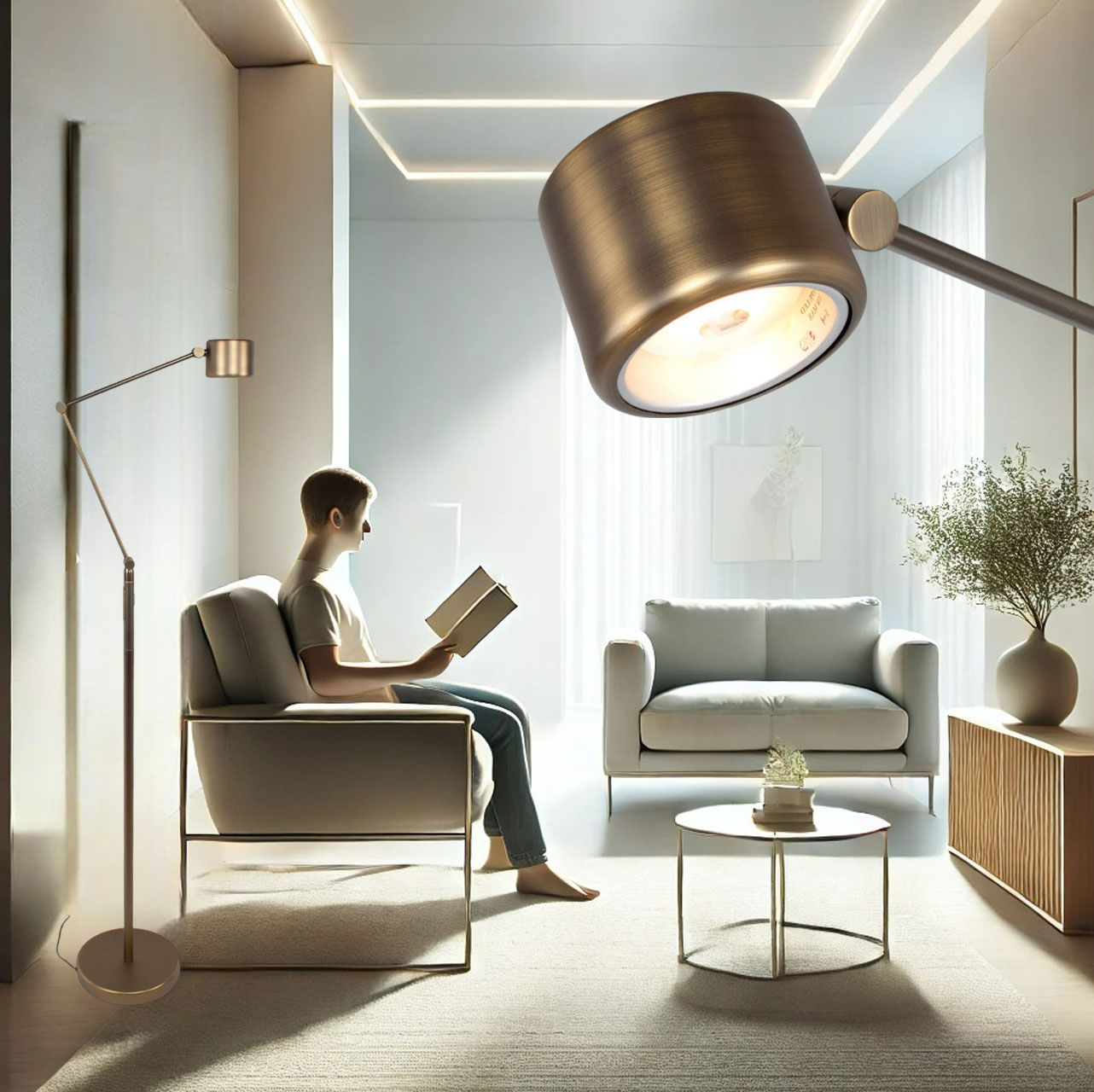De moderne leeslamp Kyoto combineert functionaliteit en stijl in een klassiek bronzen afwerking. Deze elegante leeslamp heeft een verstelbare leesarm met twee knikpunten en een 360-graden draaibare lampkop. Daarmee zorgt deze staande lamp voor optimale flexibiliteit en aanpassing aan elke leeshoek. De Kyoto leeslamp is 140 cm hoog en staat stevig op een voet met een diameter van 25 cm. Met een indrukwekkende reikwijdte van 65 cm en een 200 cm lang zwart snoer, is deze lamp van alle gemakken voorzien.