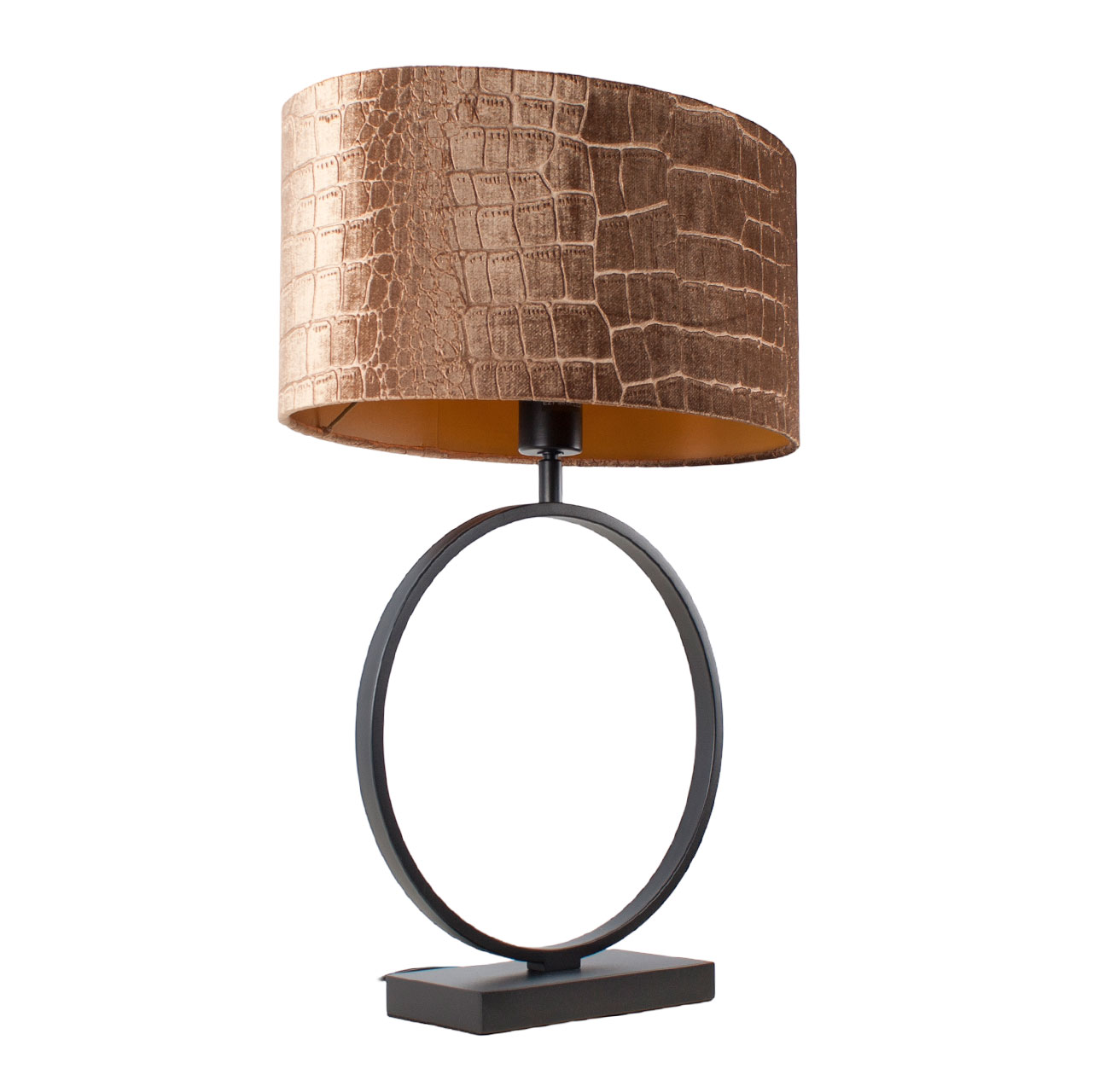 Moderne zwarte tafellamp met ovale krokodillenprint kap | Bronze on gold 40 cm