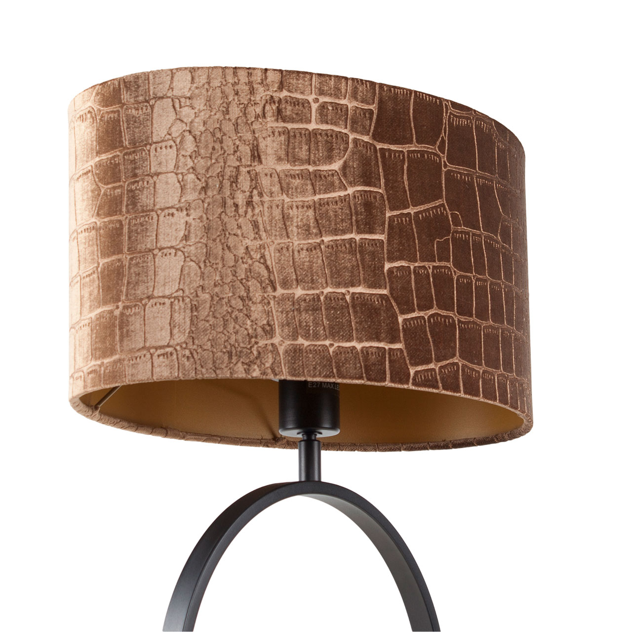 De ovale kap is uitgevoerd in een luxe krokodillenprint met bronzen tinten, wat de lamp een rijke en exotische uitstraling geeft. De gouden binnenkant van de kap zorgt voor een warme en uitnodigende lichtverspreiding, waardoor je een gezellige en stijlvolle ambiance creëert in elke ruimte. Deze combinatie van Bronze on Gold maakt de lamp een opvallende keuze voor zowel moderne als klassieke interieurs.