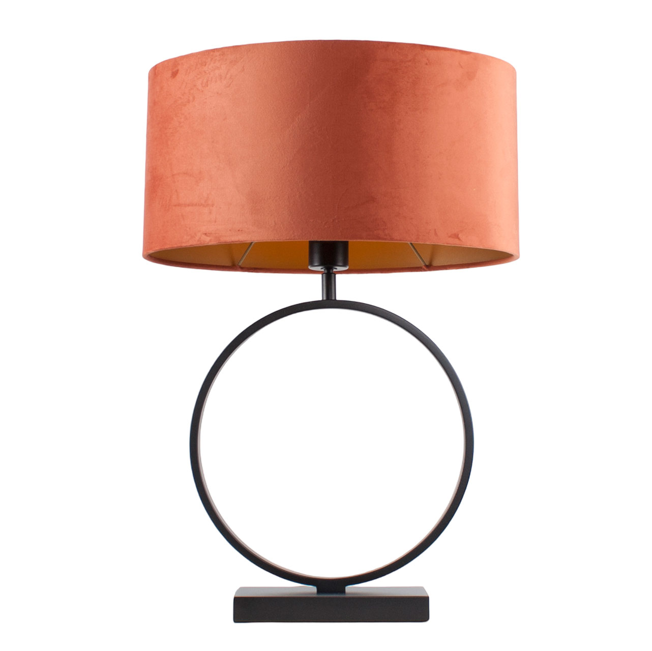 De moderne zwarte tafellamp Sienna combineert eigentijds design met warme luxe. Met een roestkleurige velvet kap en gouden binnenkant, biedt deze lamp stijlvolle en sfeervolle verlichting voor elk interieur.