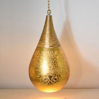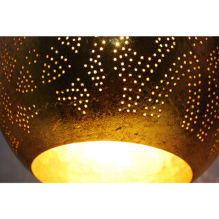 Deze trendy hanglamp is handgemaakt en door het speelse gaatjespatroon een echte eye-catcher voor in huis. Deze druppelvormige lamp is er voor gemaakt om een luxe oosters tintje te geven aan uw interieur. Alle kleine gaatjes zorgen voor schaduwen op de wand en het plafond. Hiermee geeft u een sprookjesachtige sfeer aan de ruimte. De hanglamp heeft een diameter van 26 cm en een hoogte van 59 cm. De ketting en het snoer zijn in lengte verstelbaar tot een maximale hoogte van 185 cm. De filigrain lampen zijn in allerlei vormen en maten verkrijgbaar en daardoor perfect te combineren. Onze filigrain lampen zijn verkrijgbaar als tafel-, wand-, en hanglampen. Onderaan de pagina vindt u meer van deze trendy eye-catchers.