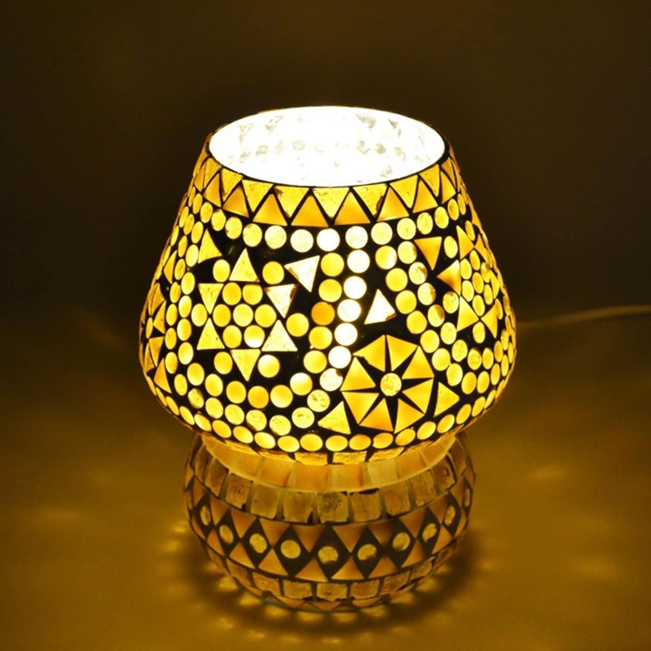 Deze tafellamp is handgemaakt en uniek door zijn mozaïek van gekleurd glas, waar onwijs mooie sfeerverlichting van af komt. Deze lamp is er voor gemaakt om een luxe oosters tintje te geven aan uw interieur. De tafellamp heeft een diameter van 13cm en een hoogte van 17cm. Deze lampen zijn er in allerlei vormen en maten verkrijgbaar en daardoor perfect te combineren. Onderaan de pagina vind je meer van deze trendy eye-catchers.