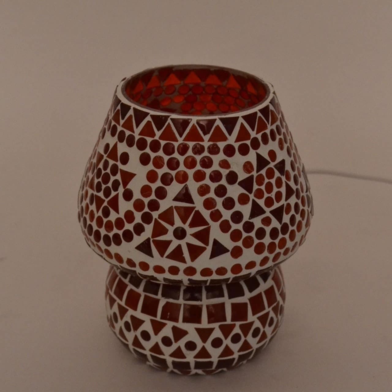 Oosterse mozaïek tafellamp H17cm Mushroom Traditioneel Design rood-oranje
