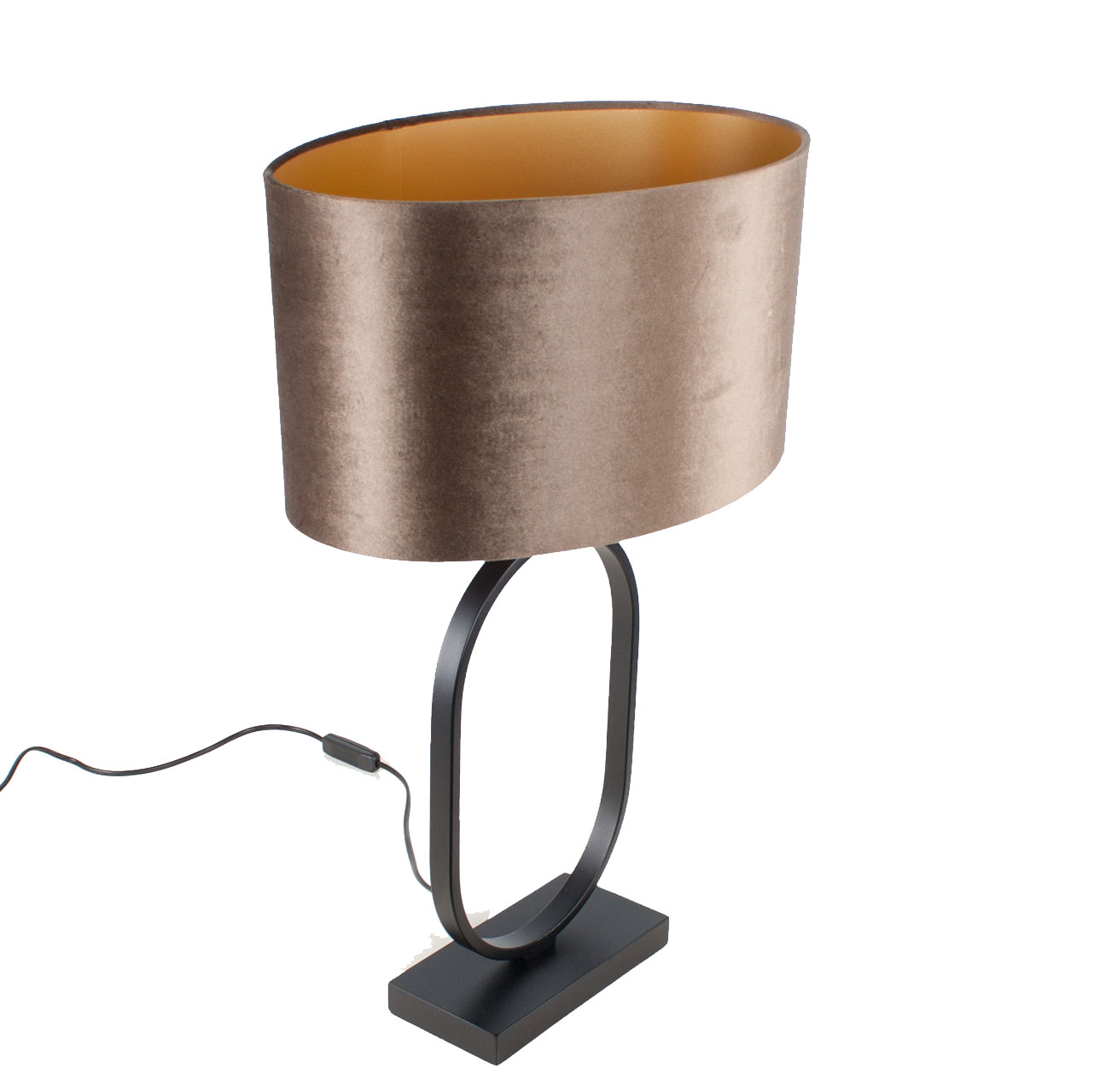 Ovale tafellamp Verona zwart met ovale velours kap – Earth on gold 40 cm
