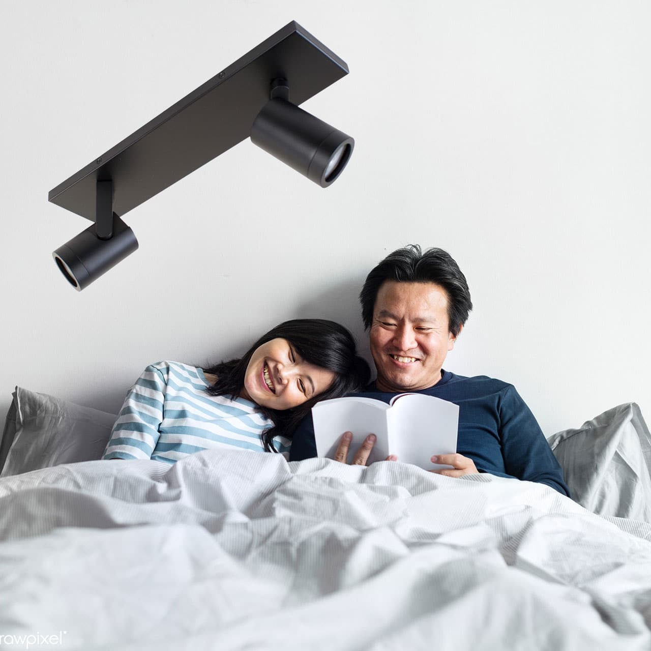 Ook in de slaapkamer is deze lamp een slimme keuze. Richt een lichtpunt op een kledingkast of spiegel en gebruik het andere lichtpunt voor algemene verlichting. In een kantoor of thuiswerkplek biedt deze spot extra voordeel, omdat u het licht gericht kunt inzetten op het bureau, opbergmeubels of een specifieke werkzone. Zo verbetert u zowel het comfort als de uitstraling van de ruimte.