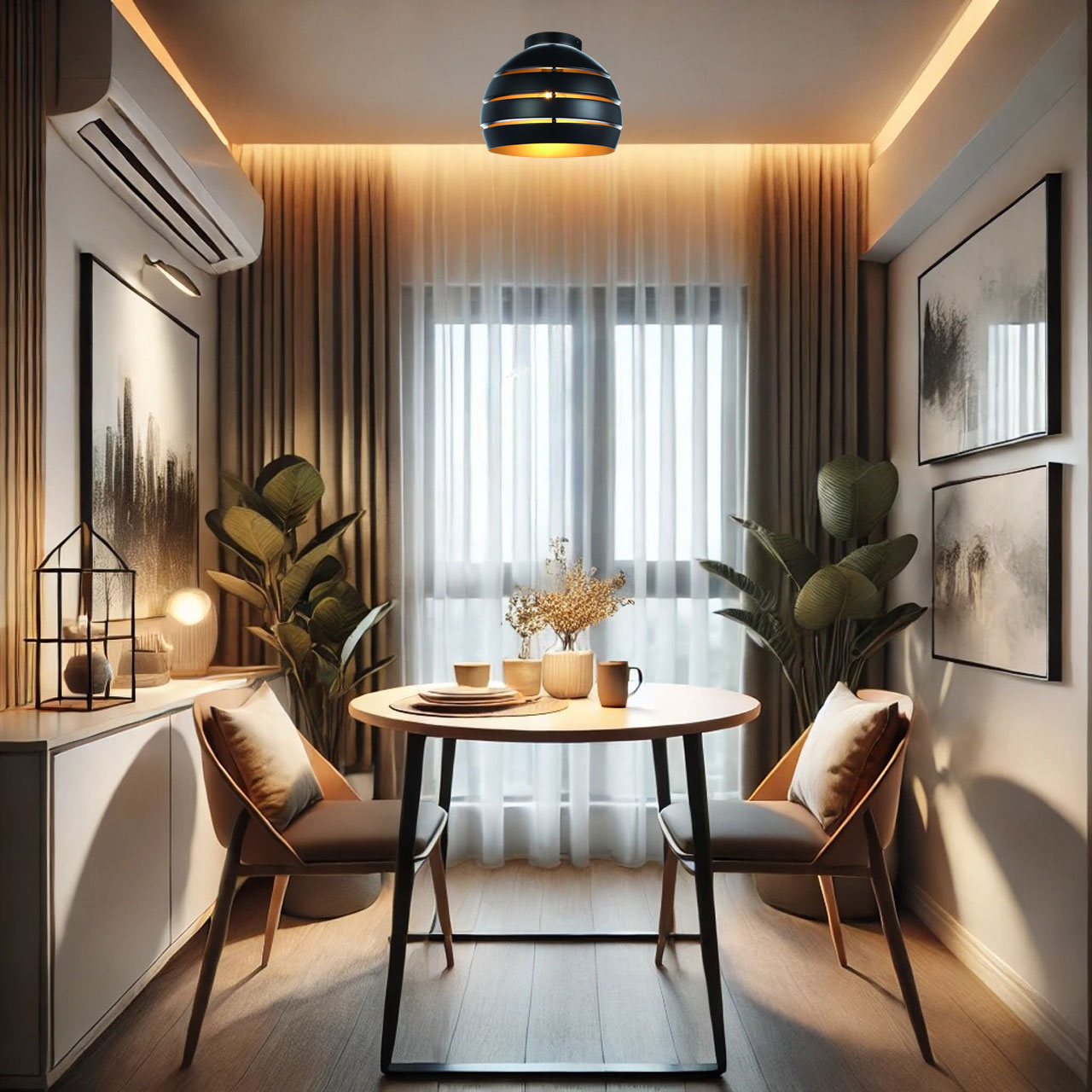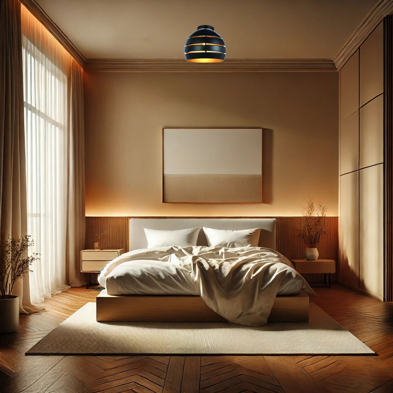De Djarin 1-lichts plafondlamp is een schitterend voorbeeld van modern design en elegantie. Met zijn unieke uitstraling en veelzijdigheid is deze lamp een aanwinst voor elk interieur. De opengewerkte kap, uitgevoerd in zwart met een opvallende goudkleurige binnenkant, zorgt voor een warme en sfeervolle verlichting.