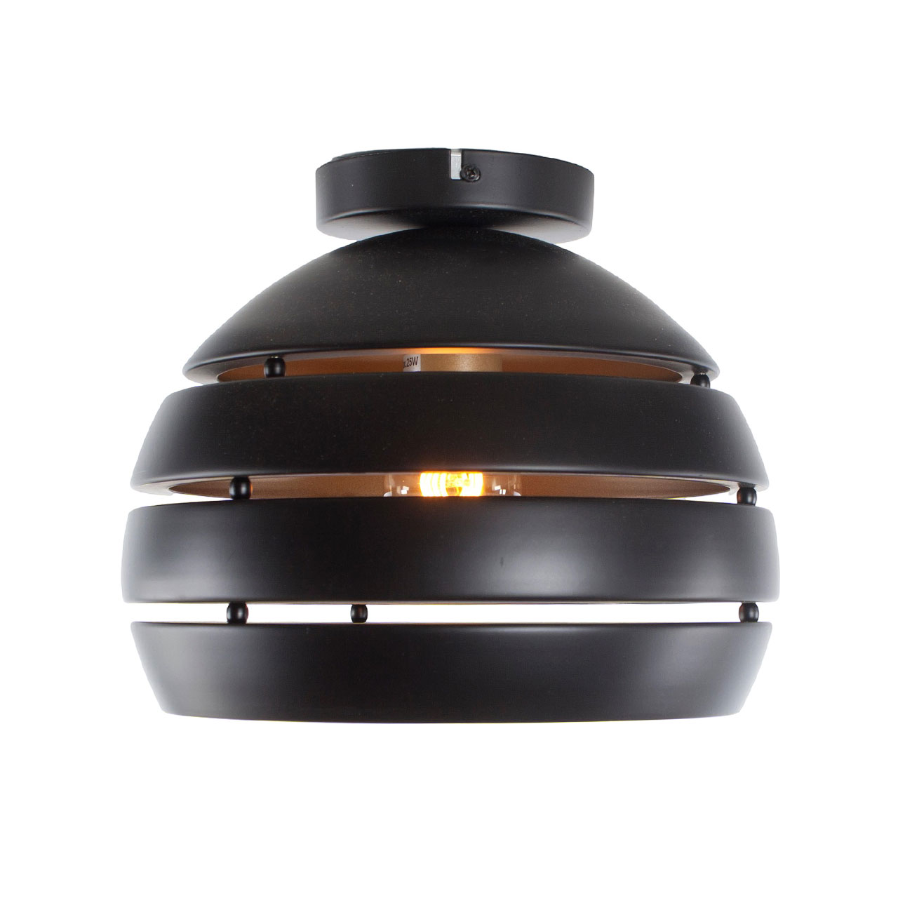 Plafondlamp Djarin | Ø 28 cm | Zwart design met goudkleurige binnenkant | Opengewerkte kap