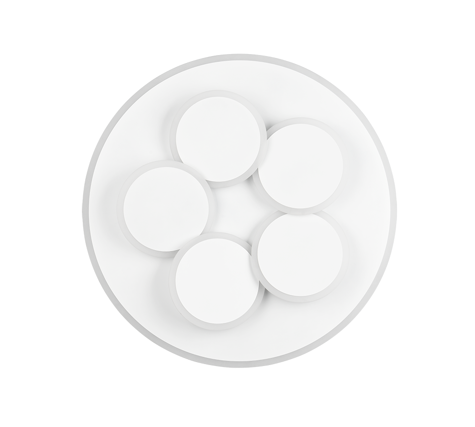 Het ontwerp valt op door zijn moderne, bijna kunstzinnige uitstraling. De compositie van verlichte vormen geeft het armatuur een decoratief karakter dat perfect aansluit bij interieurs waar verlichting gezien mag worden. De mat witte uitvoering houdt het geheel rustig, stijlvol en tijdloos.
