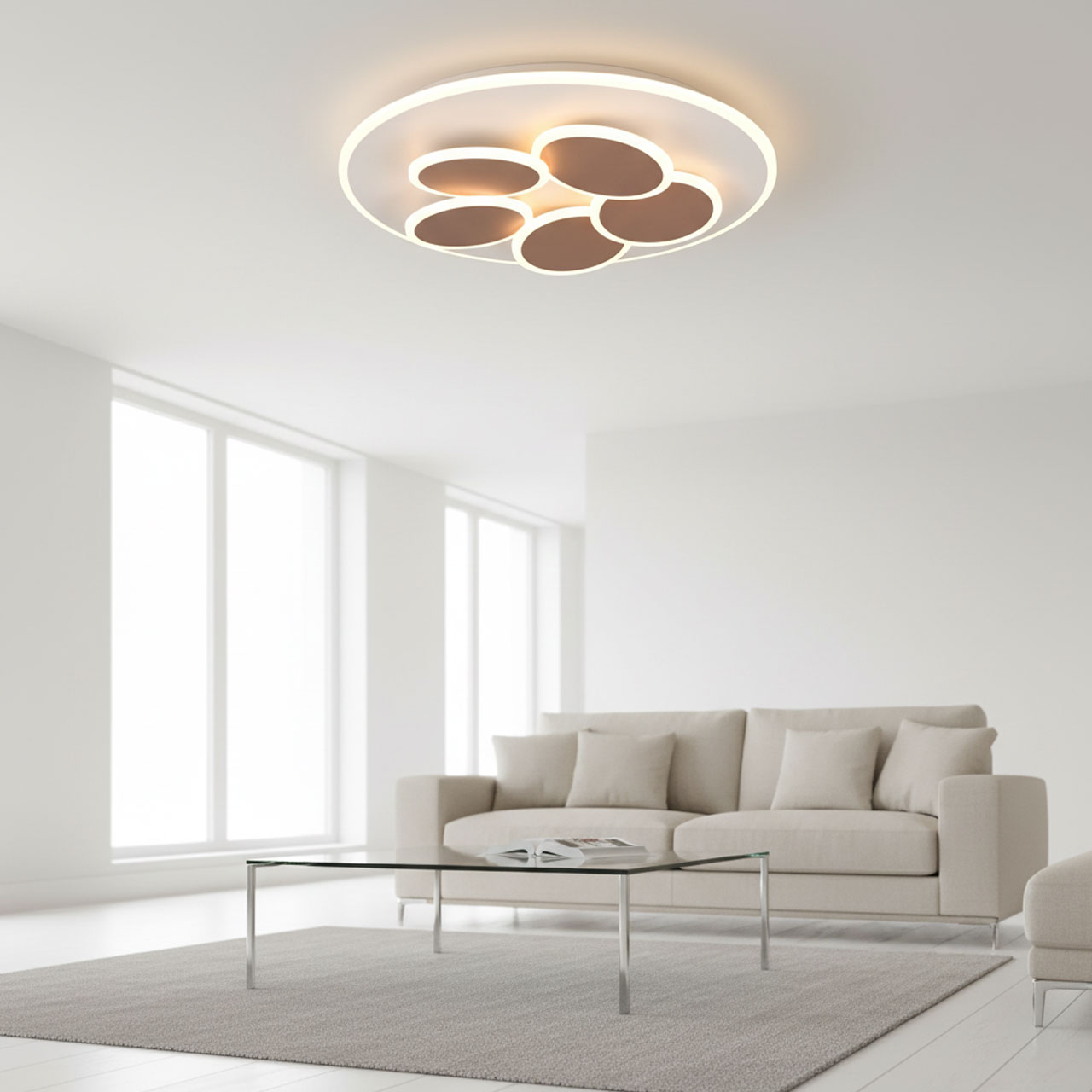 Wat deze plafondlamp bijzonder maakt, is de balans tussen uitstraling en prestatie. Het ontwerp oogt als een modern lichtobject aan het plafond, met meerdere ronde lichtvlakken die samen diepte en dynamiek creëren. Hierdoor is de lamp niet alleen een functionele keuze, maar ook een echte sfeermaker in huis.