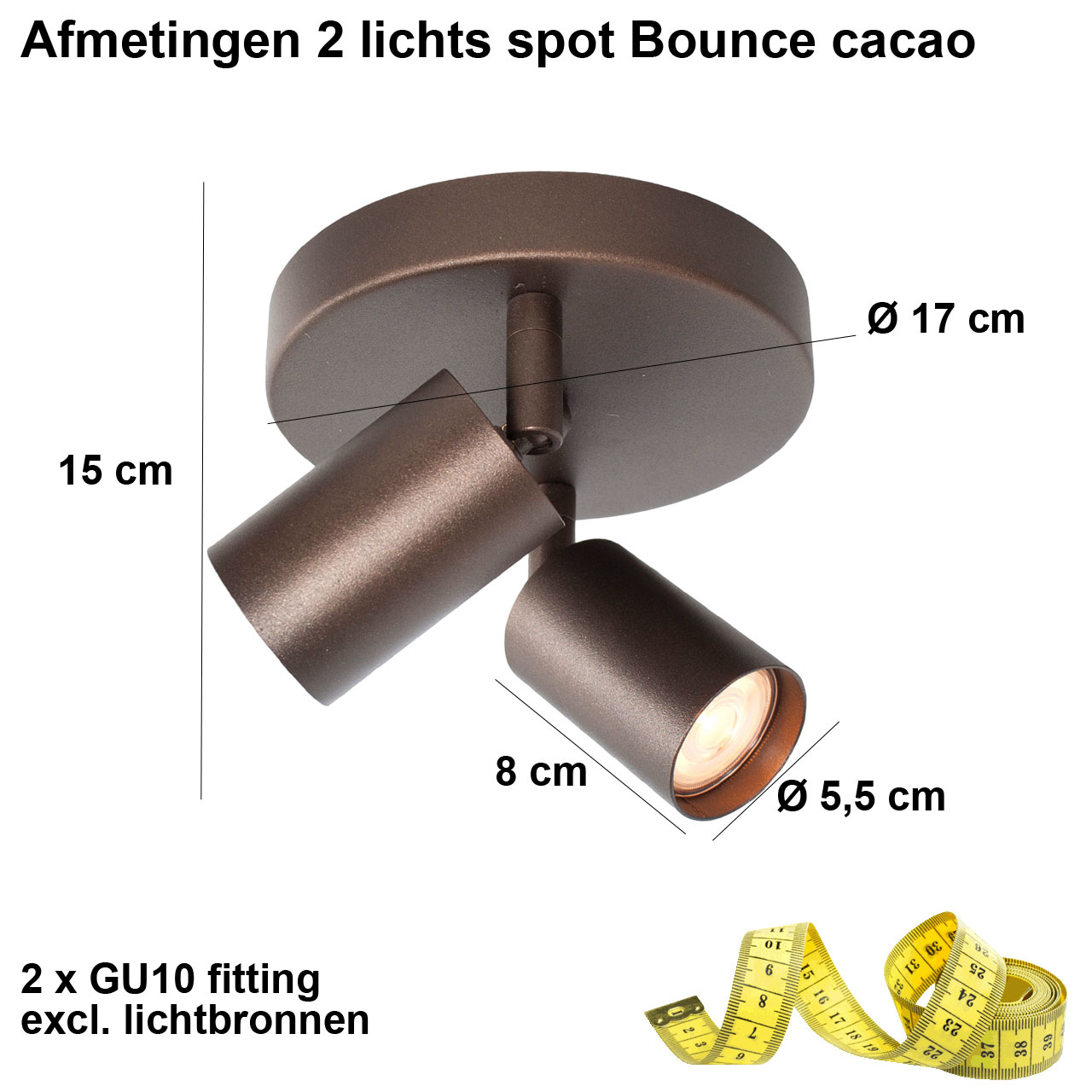 Compact. Richtbaar. Karaktervol. De Bounce 2-lichts spot in cacao bruin is dé keuze voor subtiele verlichting met een warme uitstraling.