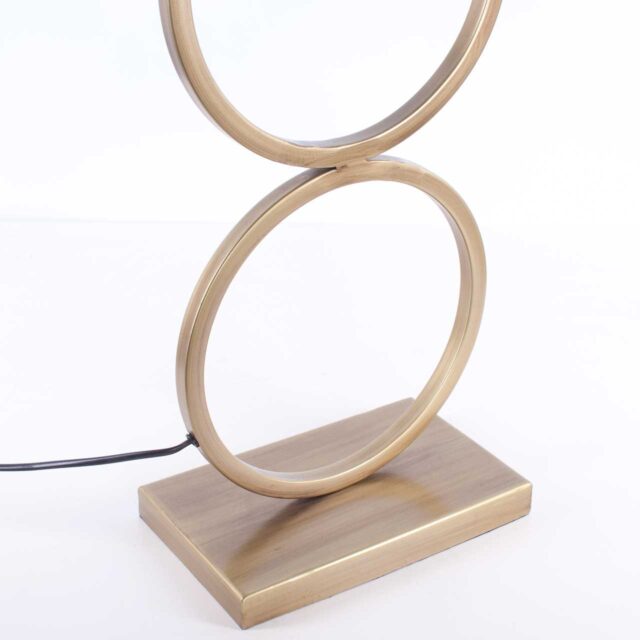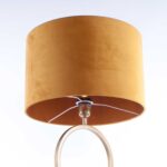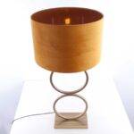Ben je op zoek naar een landelijke tafellamp met stoffen kap? Kijk dan eens naar deze bronzen tafellamp met twee ringen. De voet is opgebouwd uit twee ringen die op elkaar zijn gelast. Een sierlijke, mooie vorm. In combinatie met een goud | gele velours kap, zorgt dit voor een prachtig lichteffect.