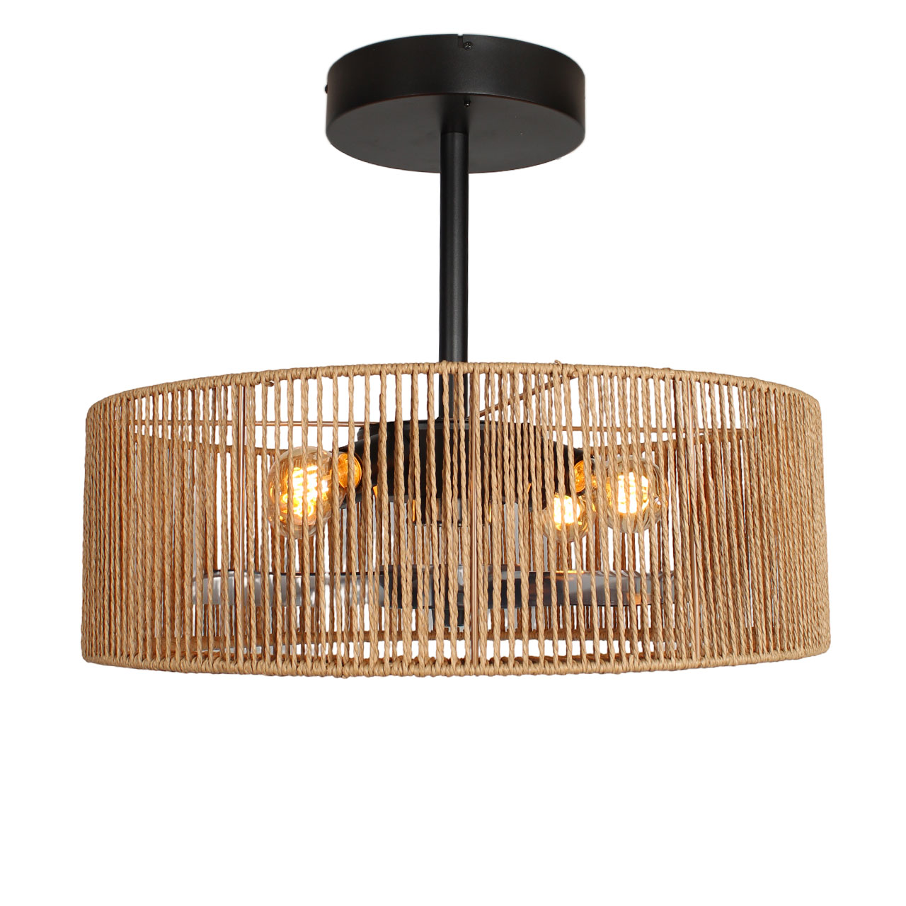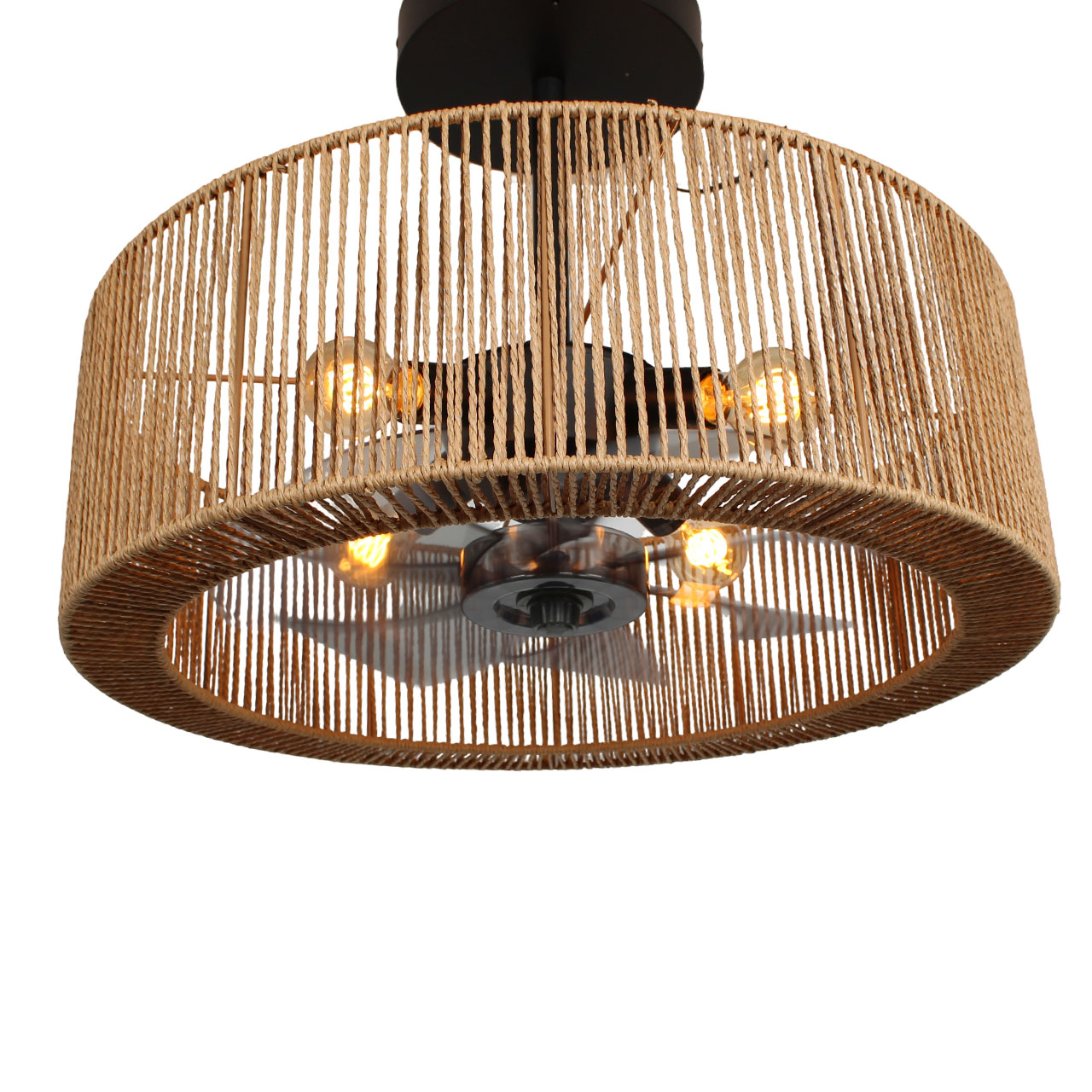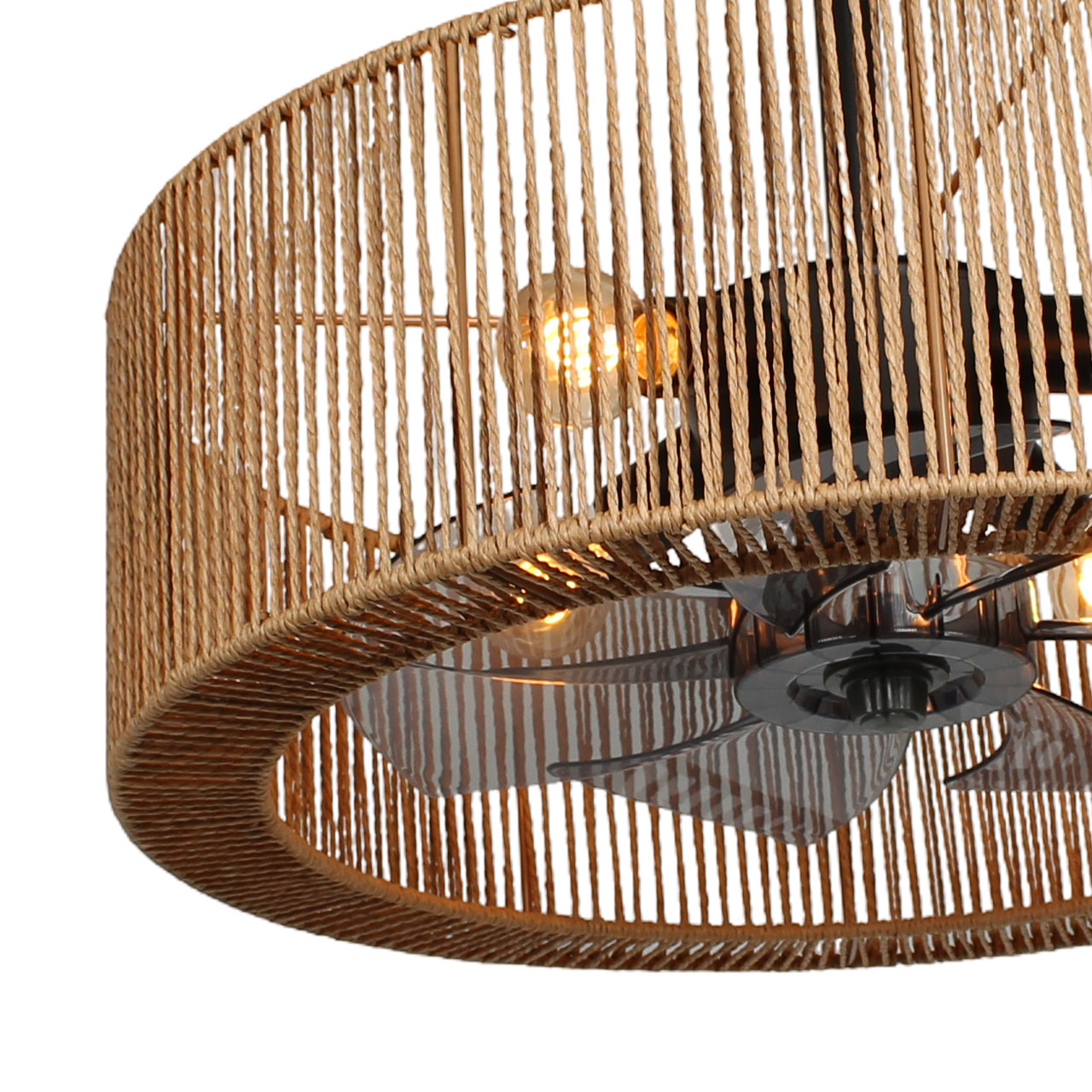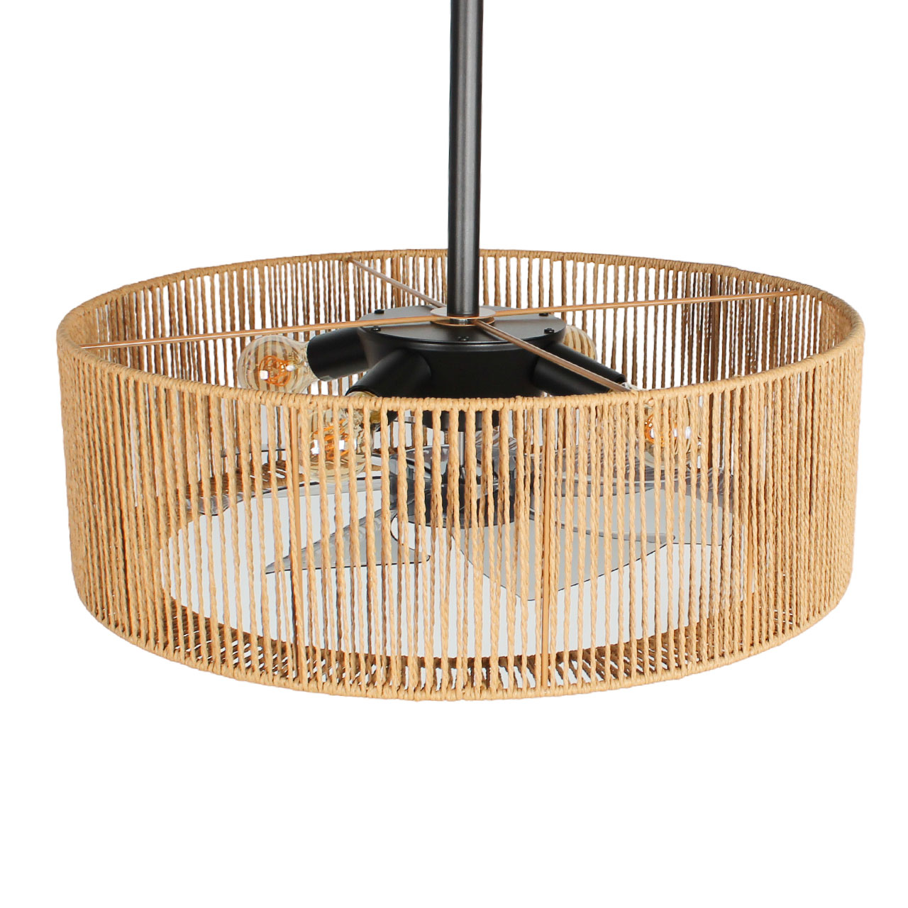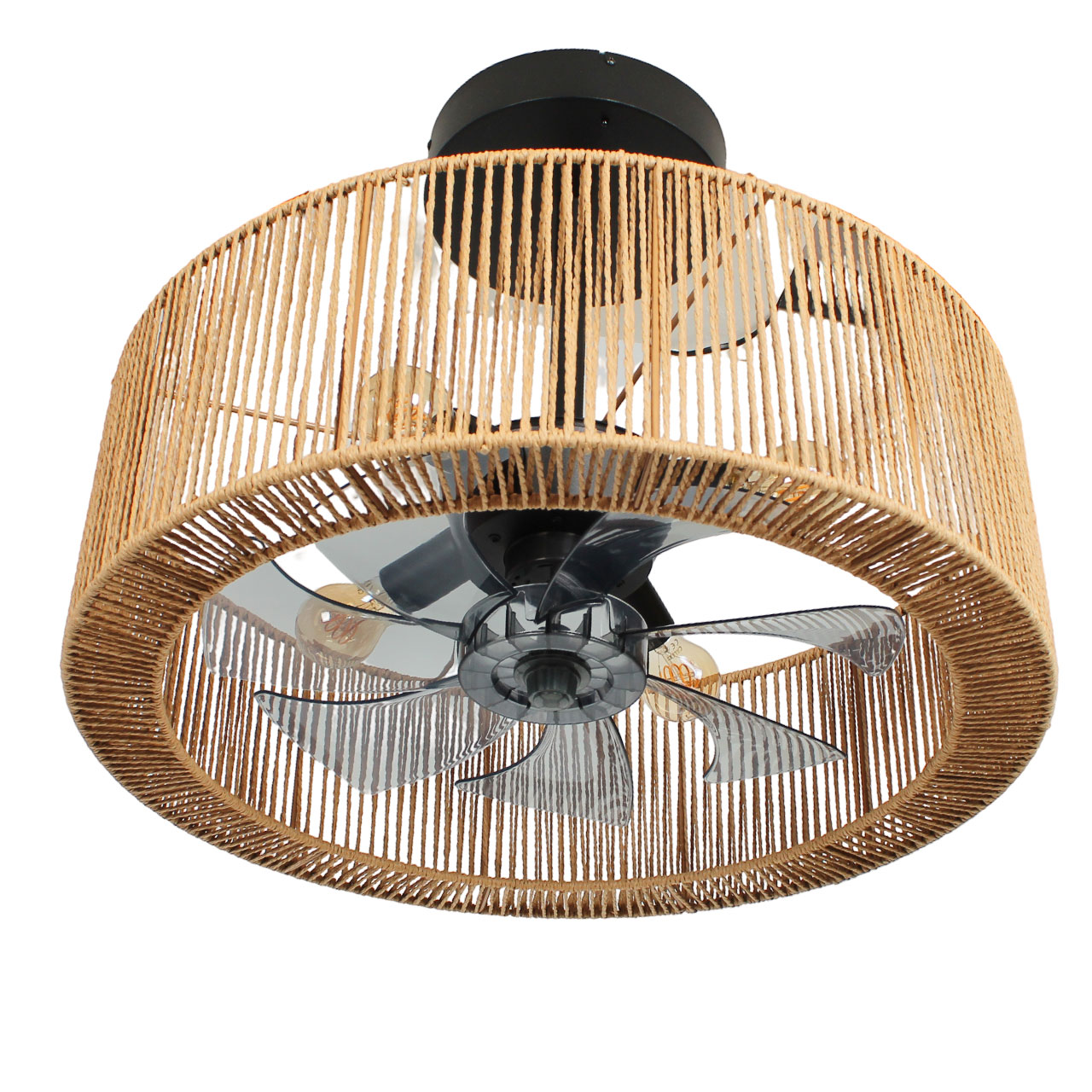 Smillum plafondventilator zwart met hennep | Ø61 cm | Verlichting + afstandsbediening
