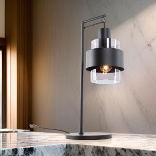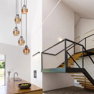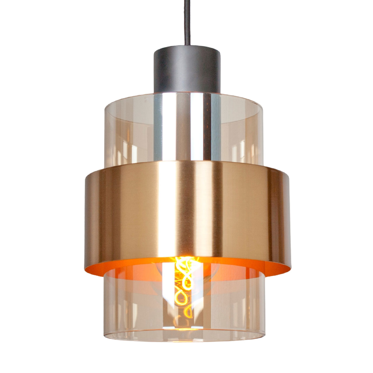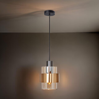 - Stijlvolle afwerking: De combinatie van zwart metaal en goudkleurige details, samen met het amberkleurige glas, geeft de lamp een chique en moderne uitstraling.