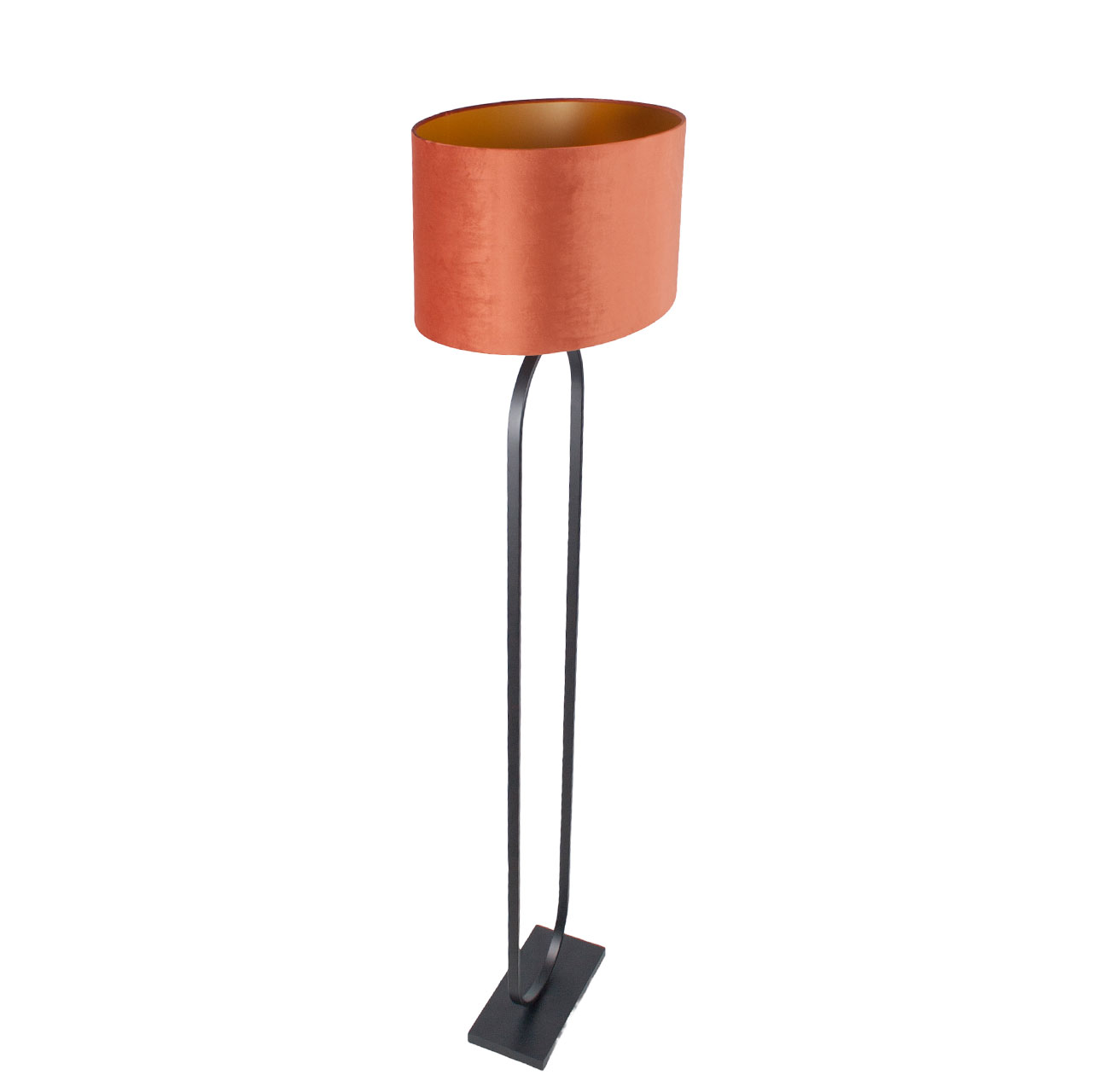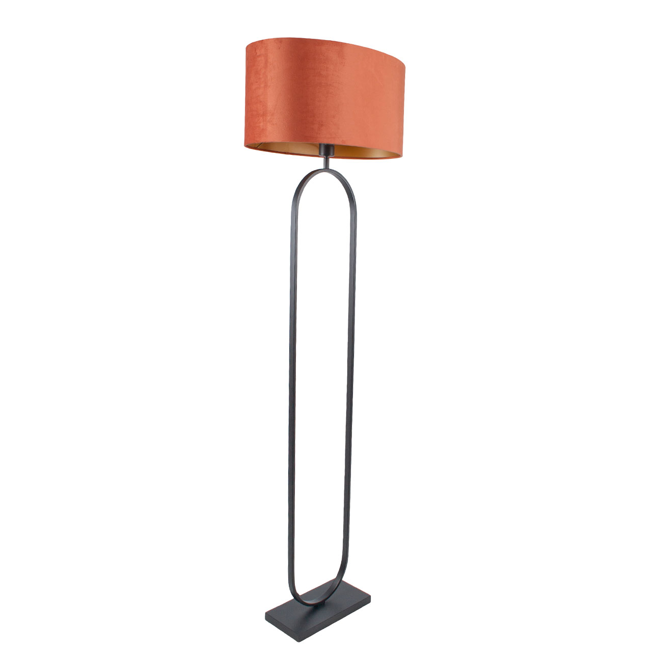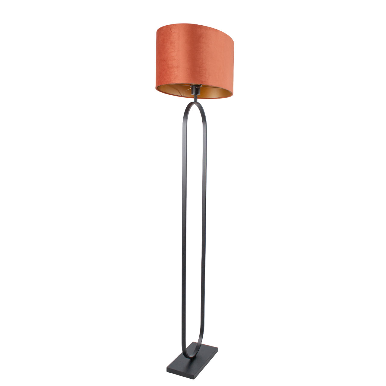 Staande lamp zwart Verona met ovale velours kap – Rusty on gold 50 cm