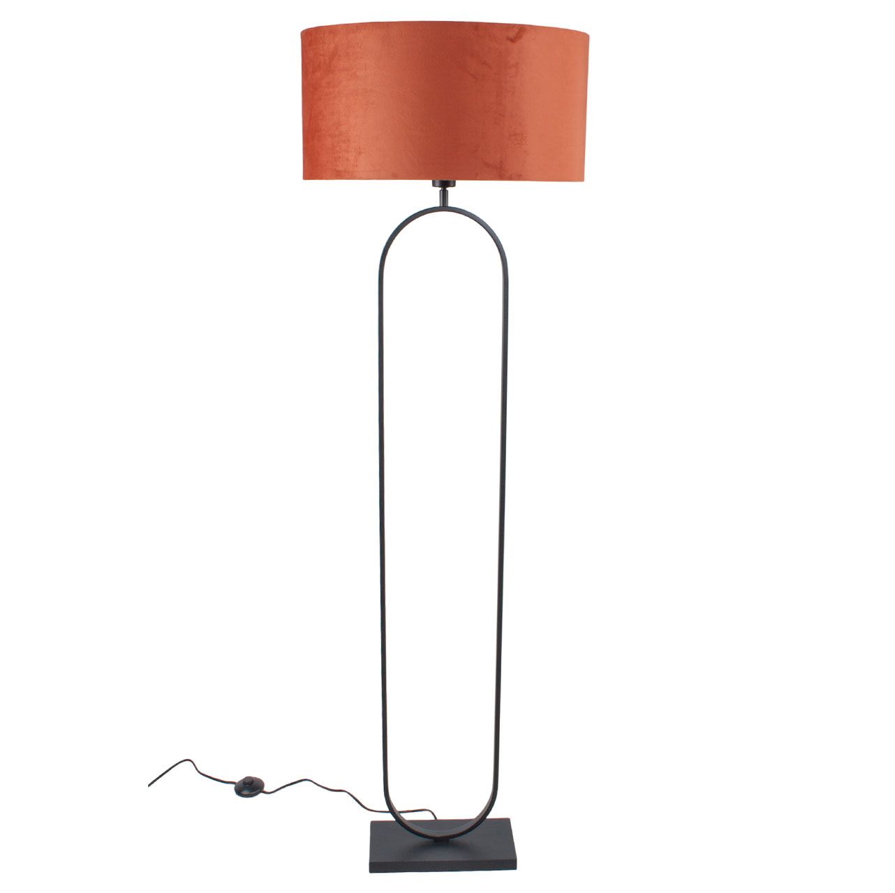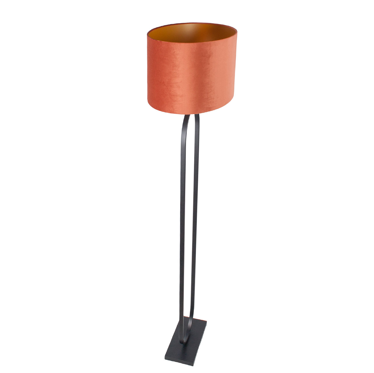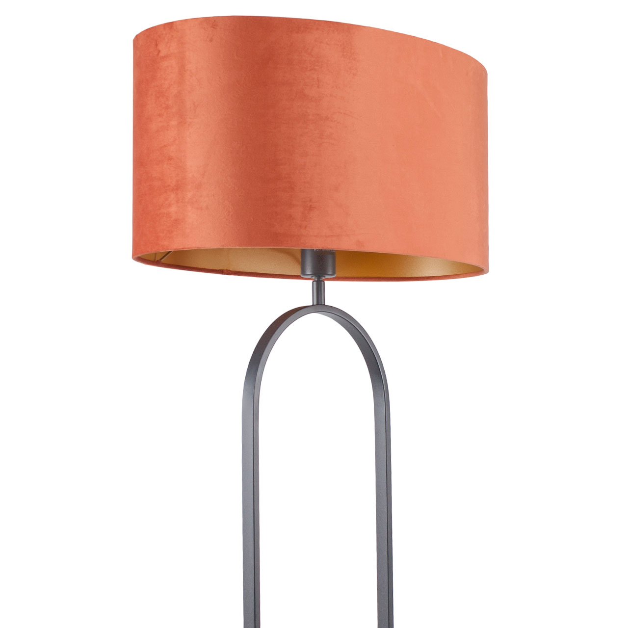 Staande lamp zwart Verona met ovale velours kap – Rusty on gold 50 cm