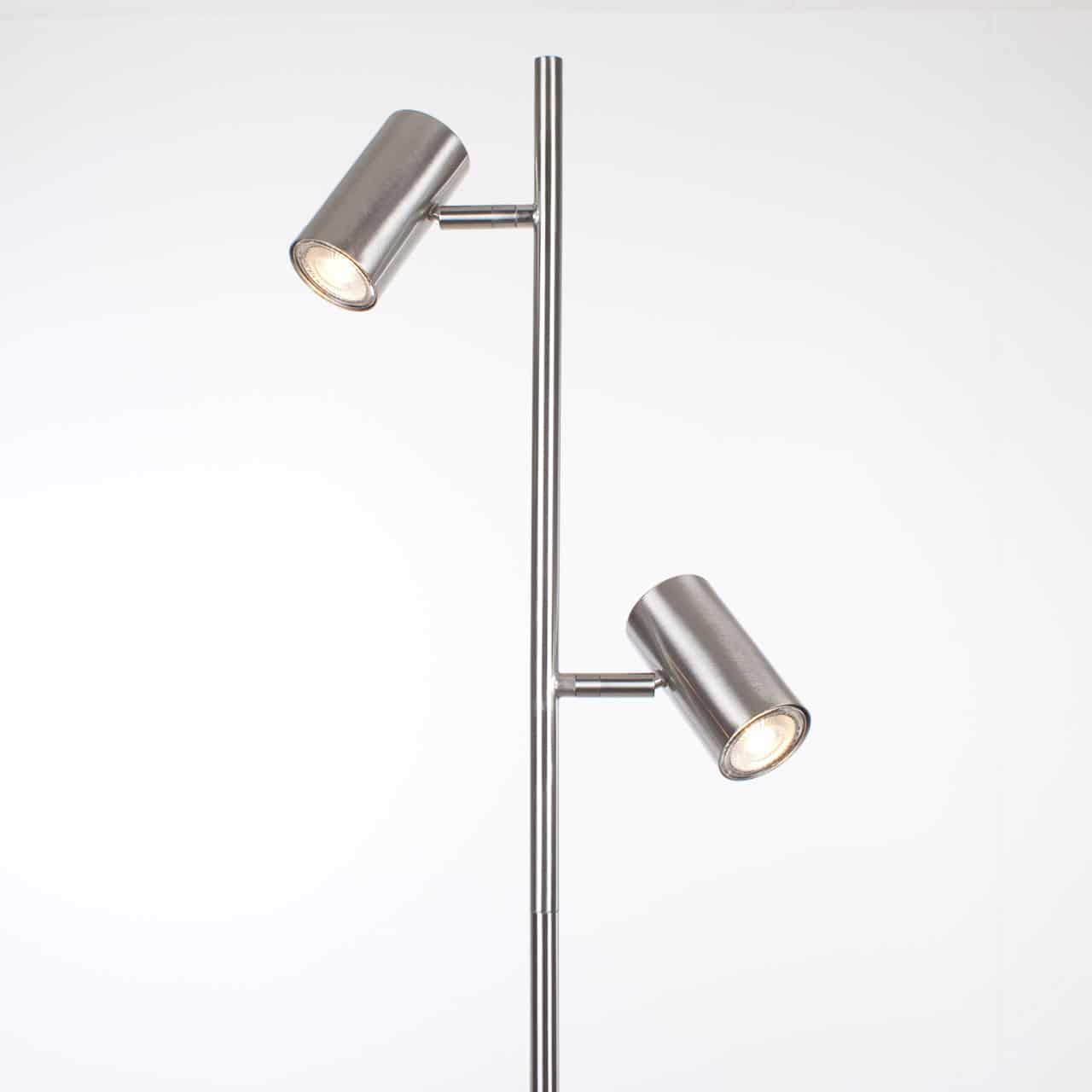 Op zoek naar een modern en praktisch leeslampje? Dan is deze staande lamp wellicht een idee? De leeslamp hoort bij de serie Burgos leeslampen. Deze lamp is zeer praktische voor diverse toepassingen. Bijvoorbeeld naast een stoel of bed. Beide reflectoren zijn draai- en kantelbaar zodat je het licht goed kunt richten. Je kunt beide lampen lamp met de meegeleverde GU10 3 standen lamp in drie lichtsterkte zetten. Dit doe je gewoon door de door de lamp aan / uit te zetten met de ingebouwde schakelaar op de reflector.