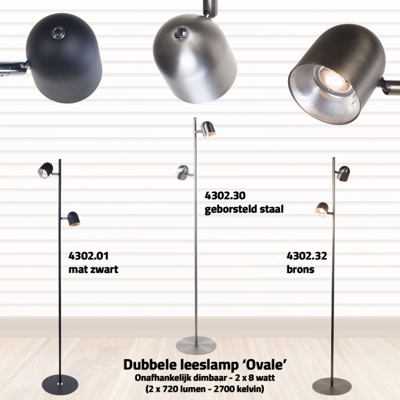 Staande Ovale Leeslamp | 2 lichts | staal | modern design