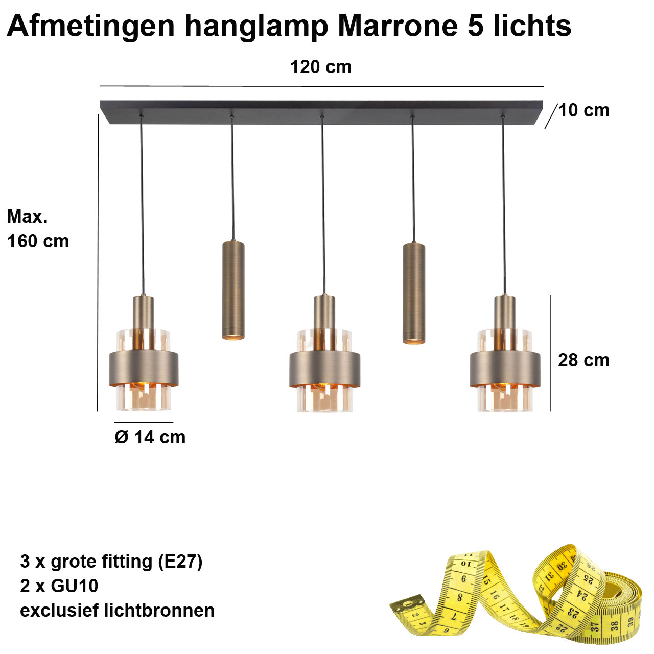 Met de Marrone 5-lichts hanglamp haal je een stijlvolle designlamp in huis die sfeer en gebruiksgemak combineert. Een echte aanwinst voor elk interieur!