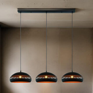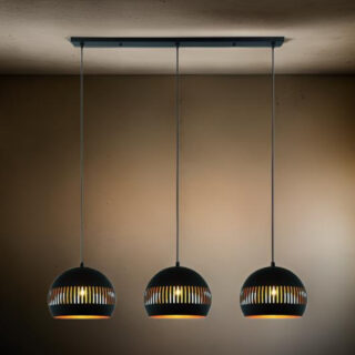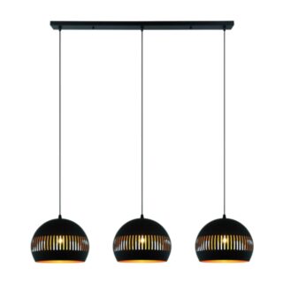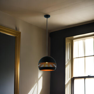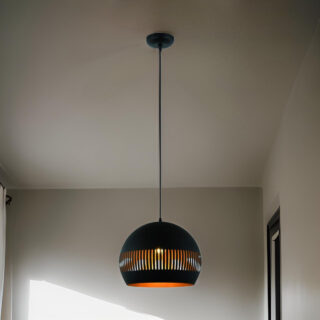De tafellamp Globo combineert een strak, zwart design met een goudkleurige binnenkant voor een warme en luxe uitstraling. Met een diameter van 24 cm biedt deze lamp een dynamisch lichteffect dankzij de opengewerkte kap en is hij voorzien van een handige handschakelaar voor eenvoudig gebruik.