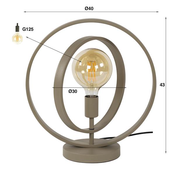 De lamp heeft een breedte van 40 cm, een diepte van 30 cm en een hoogte van 43 cm, wat zorgt voor een mooie proportie en een stabiele basis.