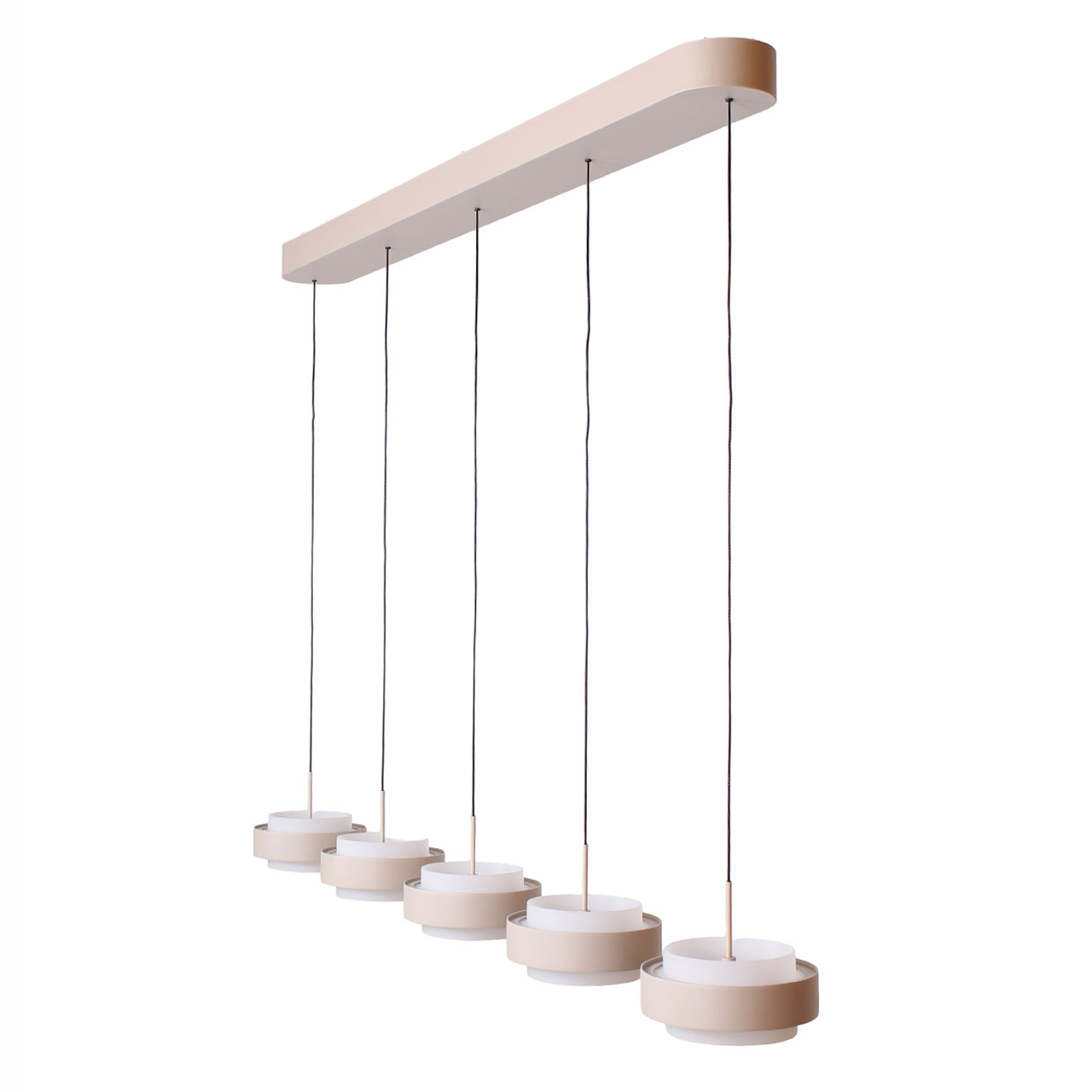 Verstelbare zand / beige hanglamp Puleggia | 5 lichts | Dim to warm | Katrolsysteem