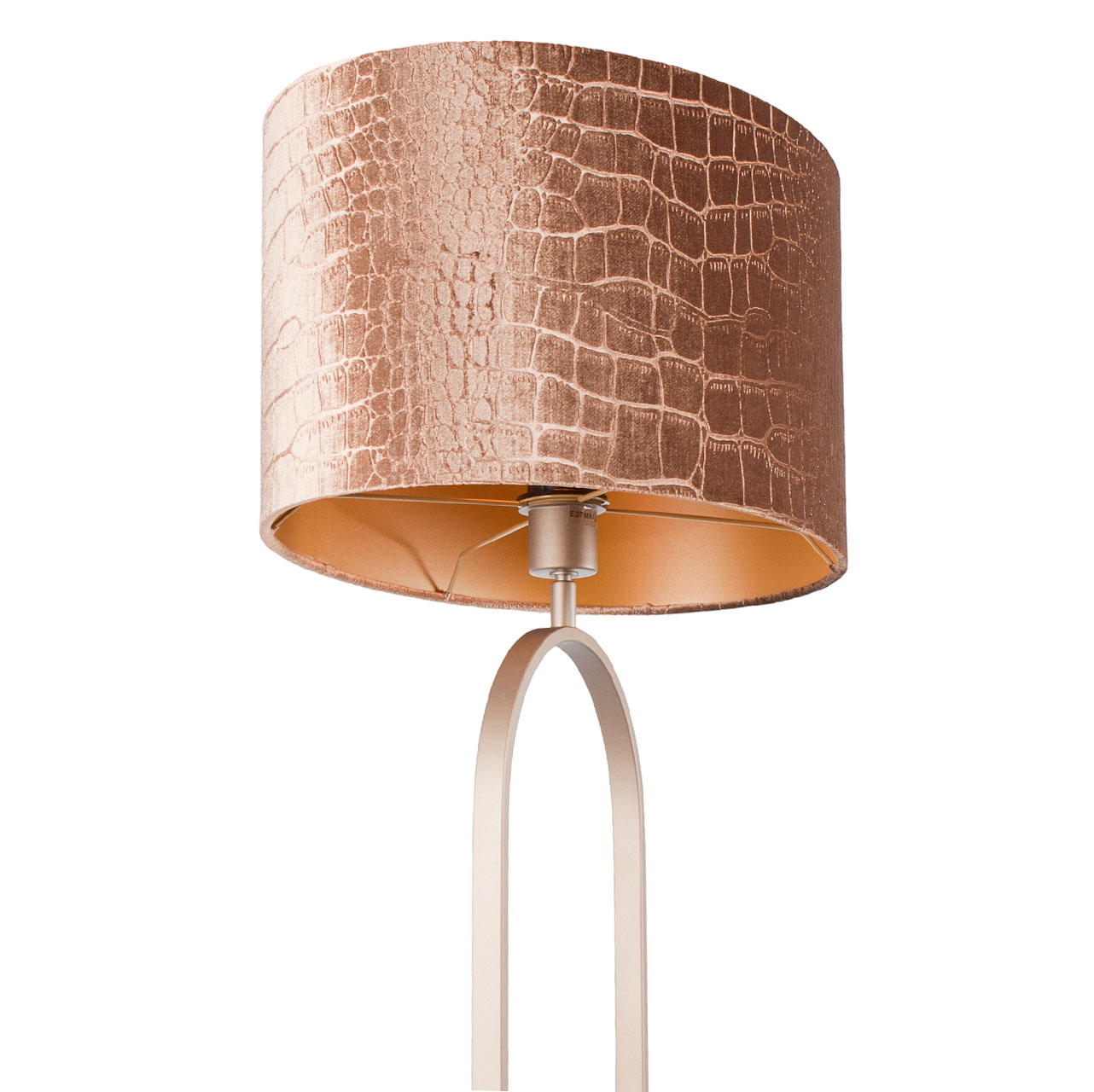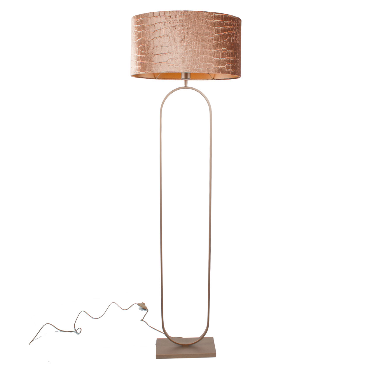 De Verona vloerlamp heeft een totale hoogte van 162 cm. De ovale kap is 50 cm breed, 34 cm diep, en 25 cm hoog. De buitenkant van de kap heeft een opvallende bronzen krokodillenprint, terwijl de binnenkant is afgewerkt in glanzend goud. Deze combinatie van brons en goud zorgt voor een krachtige, maar elegante uitstraling. De lamp wordt zo een opvallend element in elke ruimte. Of het nu de woonkamer, slaapkamer of een stijlvolle kantoorruimte is, de lamp past overal.