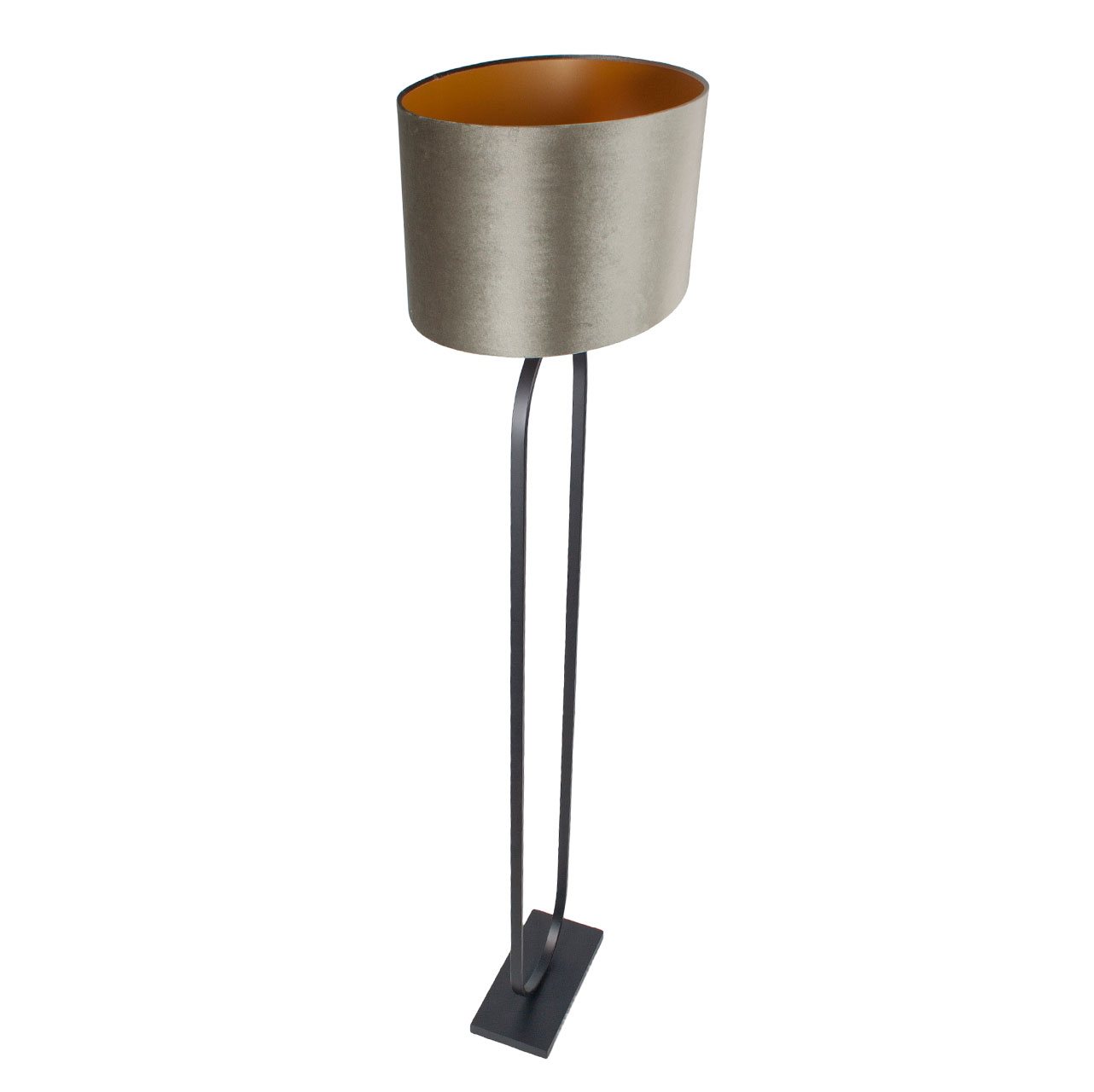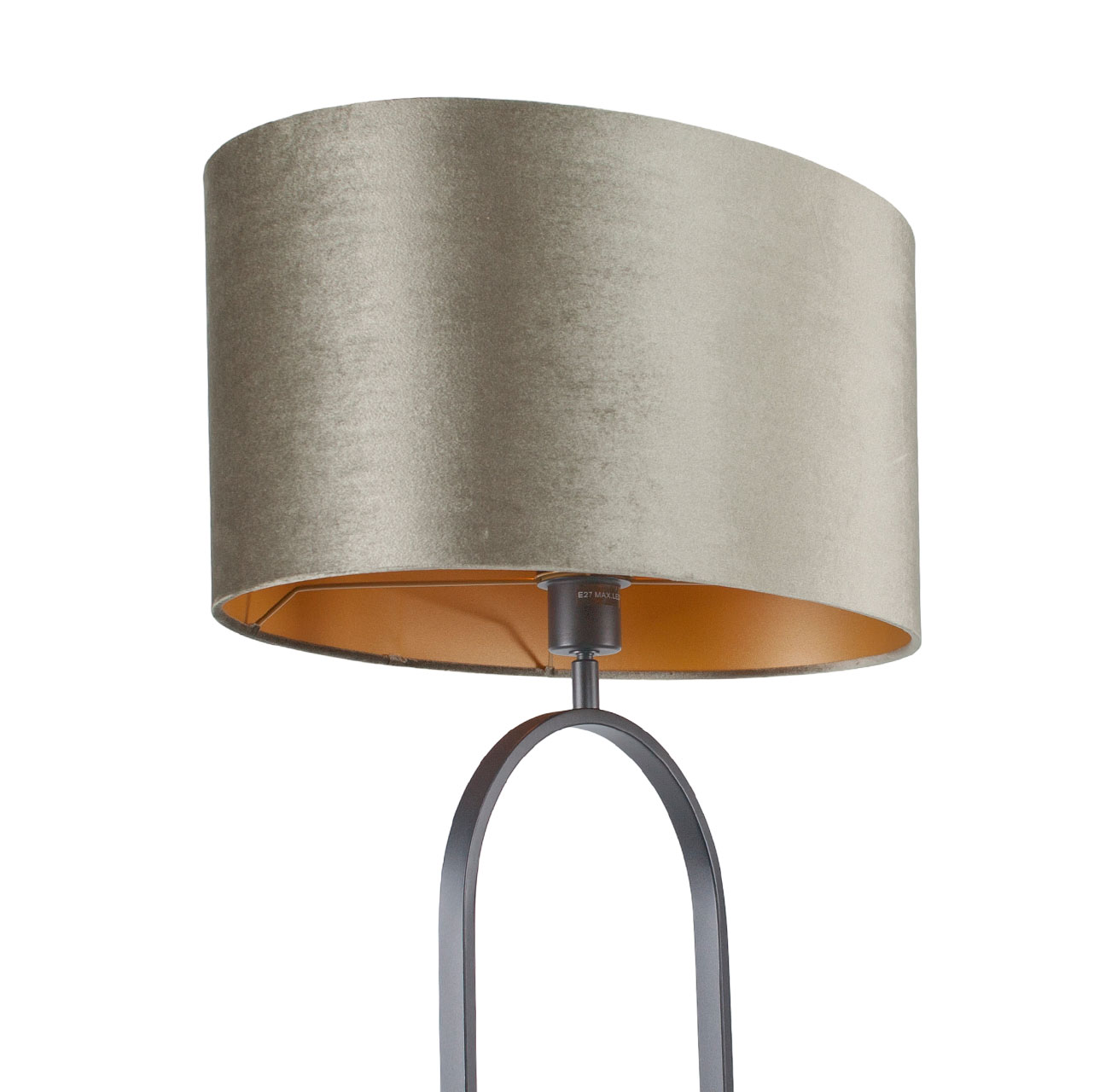 Vloerlamp Verona zwart met ovale velours kap – Olive on gold 50 cm