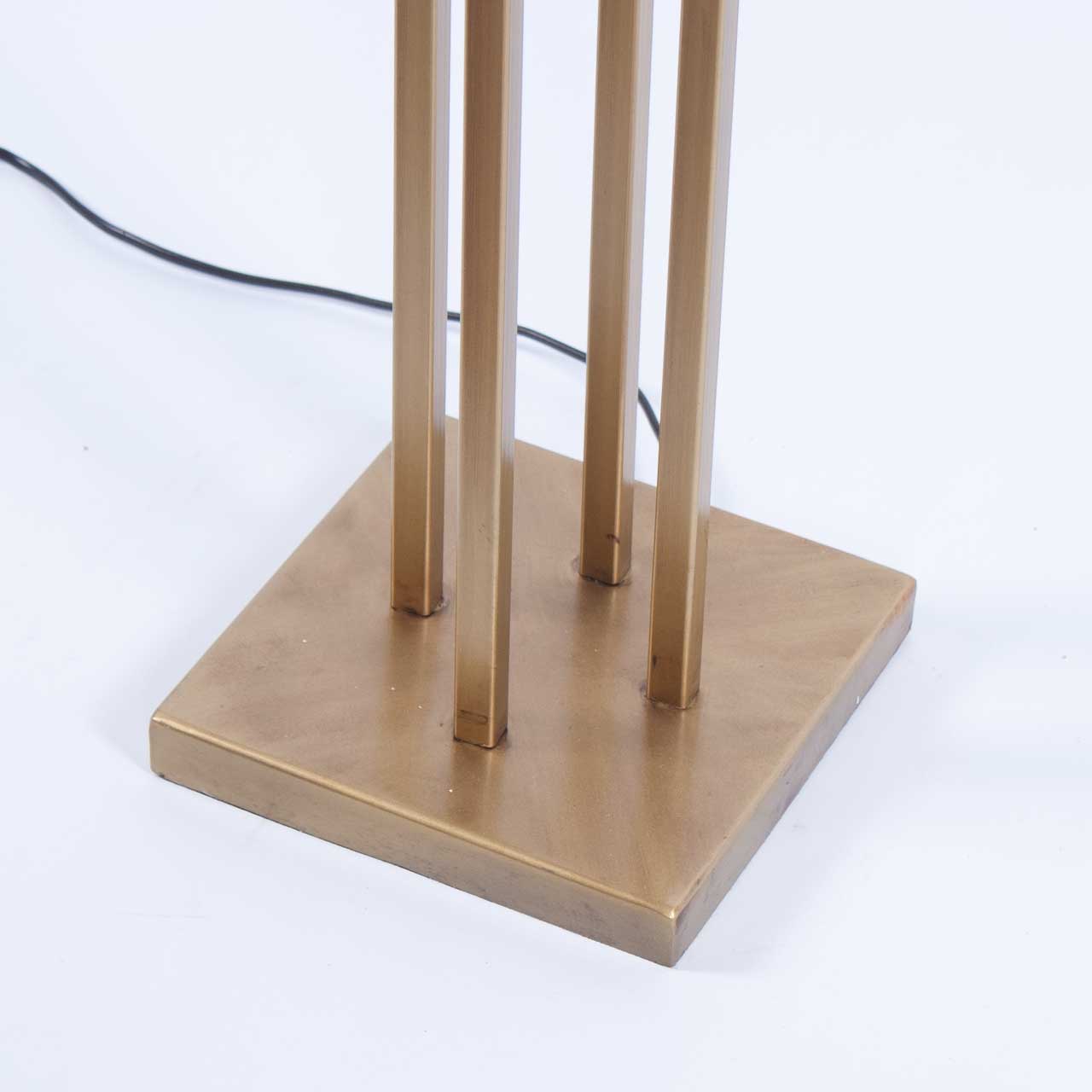 Ben je op zoek naar een vloerlamp met kap? Kijk dan eens naar deze staande lamp. De voet is opgebouwd uit vier vierkante verticale spijlen die aan de bovenkant weer bijeen komen. Een strak, open en tijdloos ontwerp. Deze voet, gecombineerd met een mooie velours kap creëert sfeer in jouw woning. Heb jij nog ergens een donker plekje thuis?