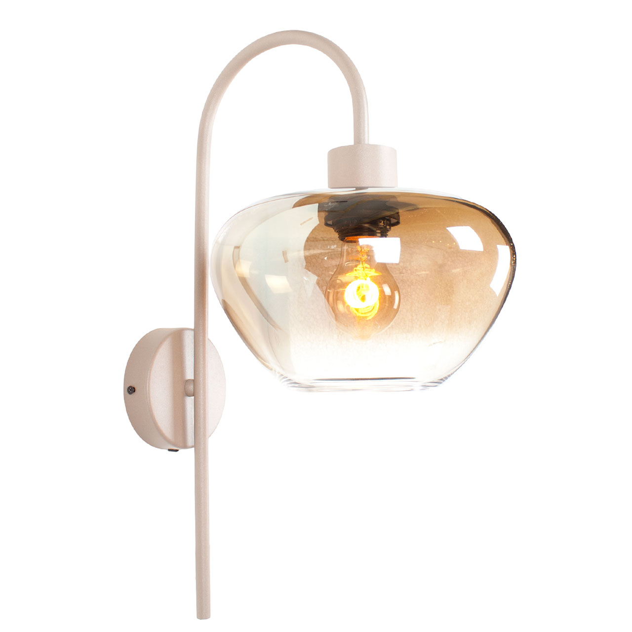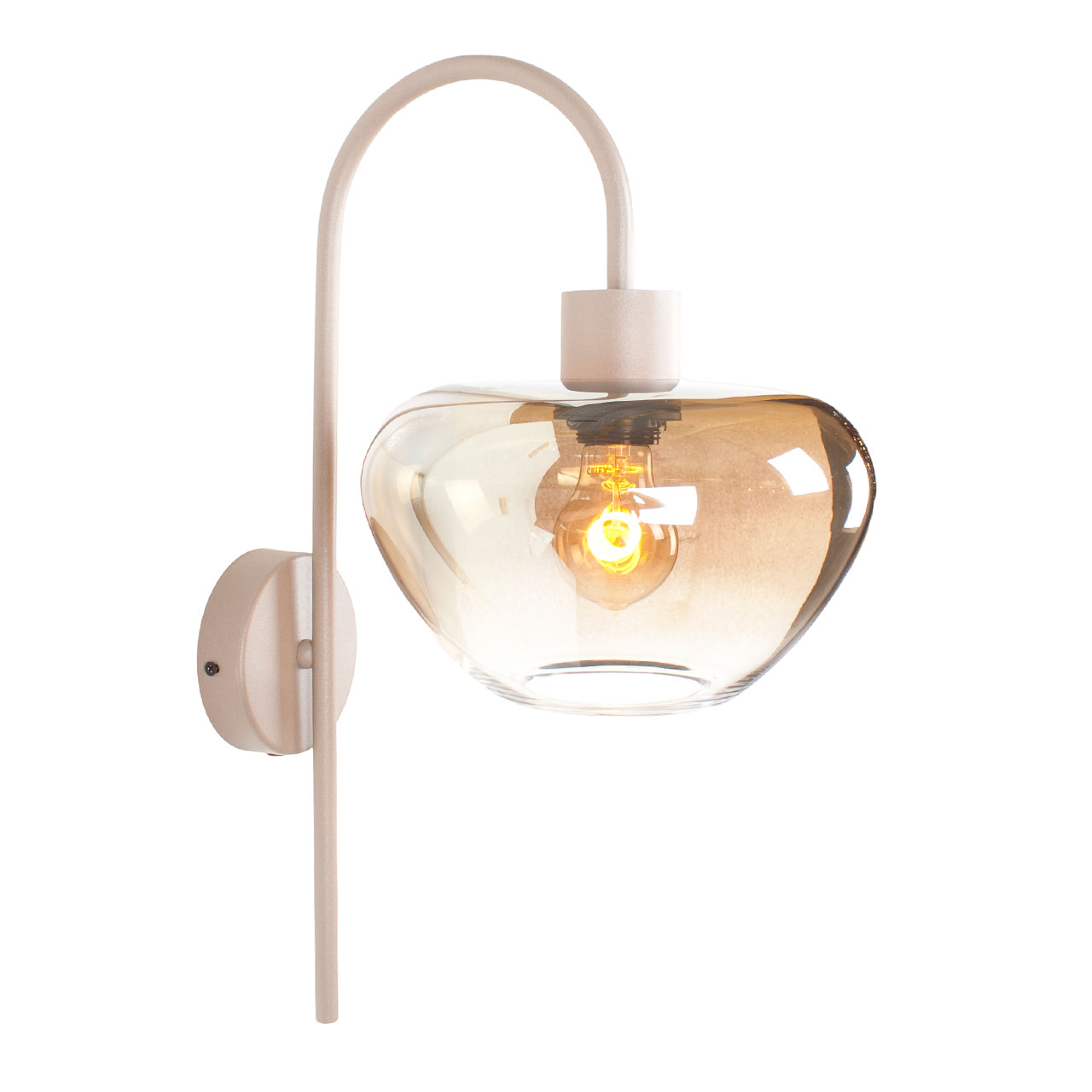 Deze design wandlamp is niet alleen een functionele lichtbron, maar ook een decoratief element in uw interieur. De combinatie van het warme zand / beige metaal en het amberkleurige glas zorgt voor een gezellige sfeer. Bovendien is de lamp geschikt voor diverse ruimtes, zoals de woonkamer, hal of slaapkamer.