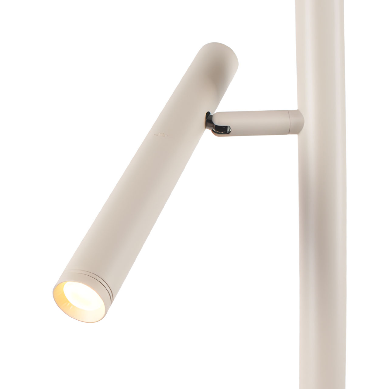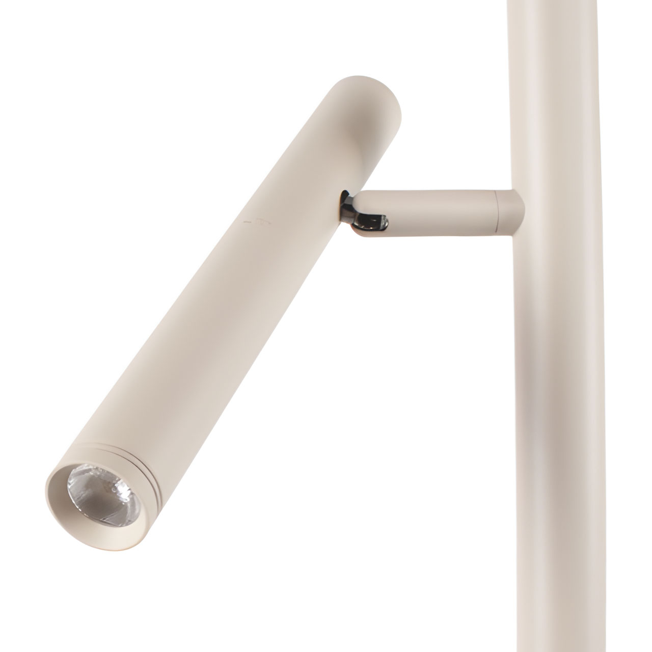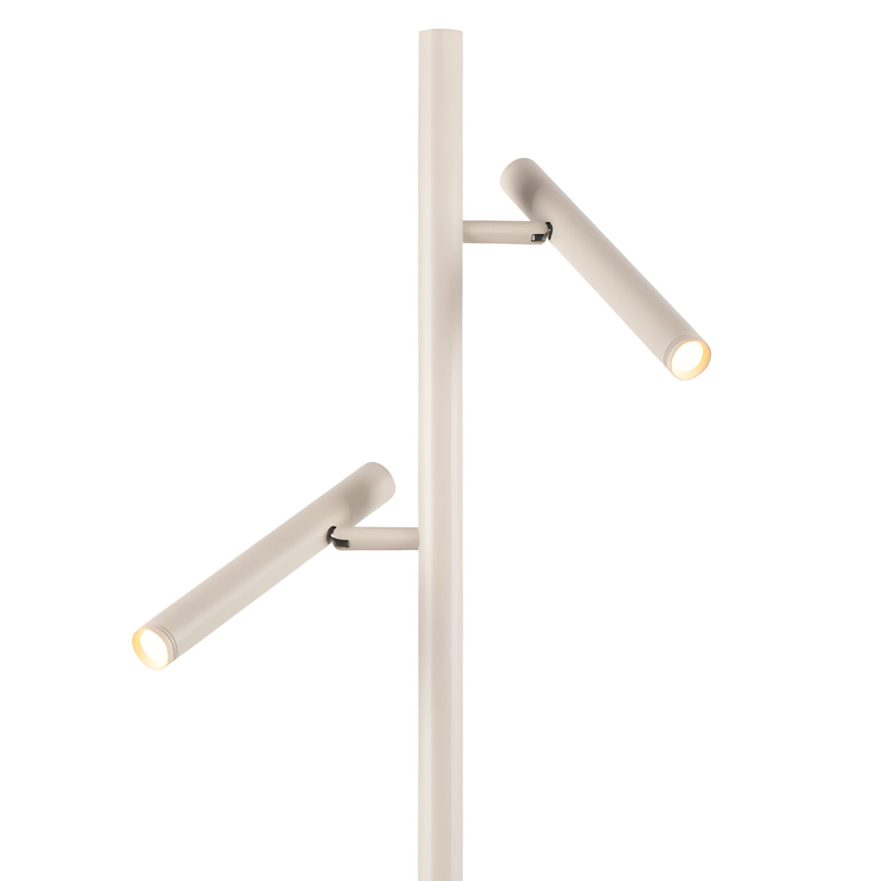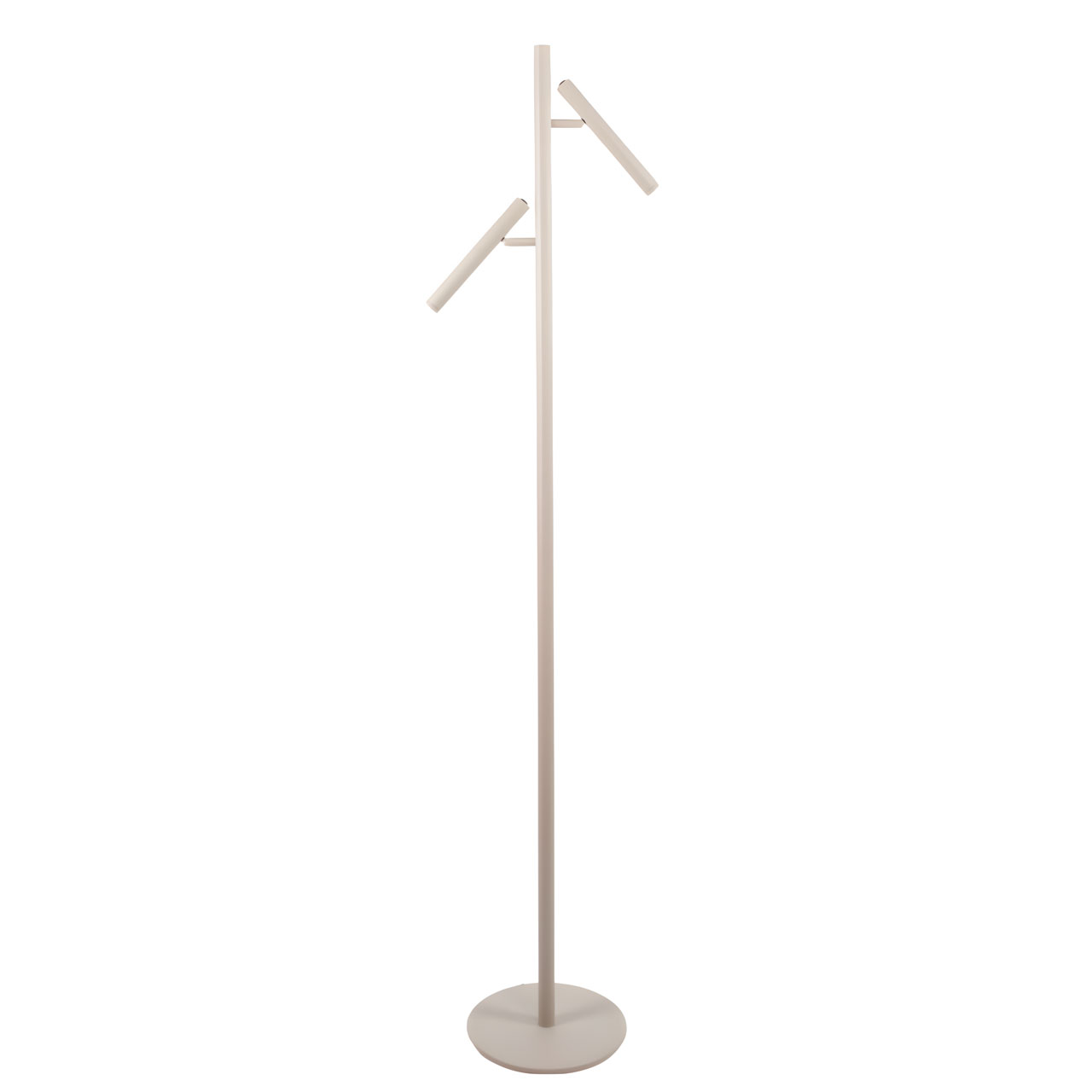 Betreed de wereld van sublieme verlichting met onze 2-lichts vloerlamp uit de Luogo serie, nu beschikbaar in het betoverende zand/creme/beige kleurenpalet. Deze vloerlamp is een meesterwerk van moderne elegantie, met een slanke verticale stang van 150 cm hoog, met twee verstelbare ronde buisjes van 21 cm waarin een krachtige 4,5 watt LED-lichtbron is ingebouwd.