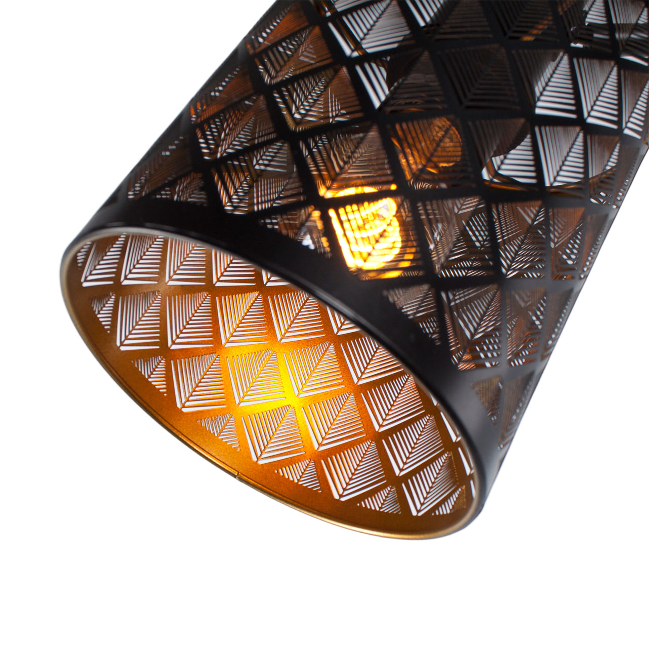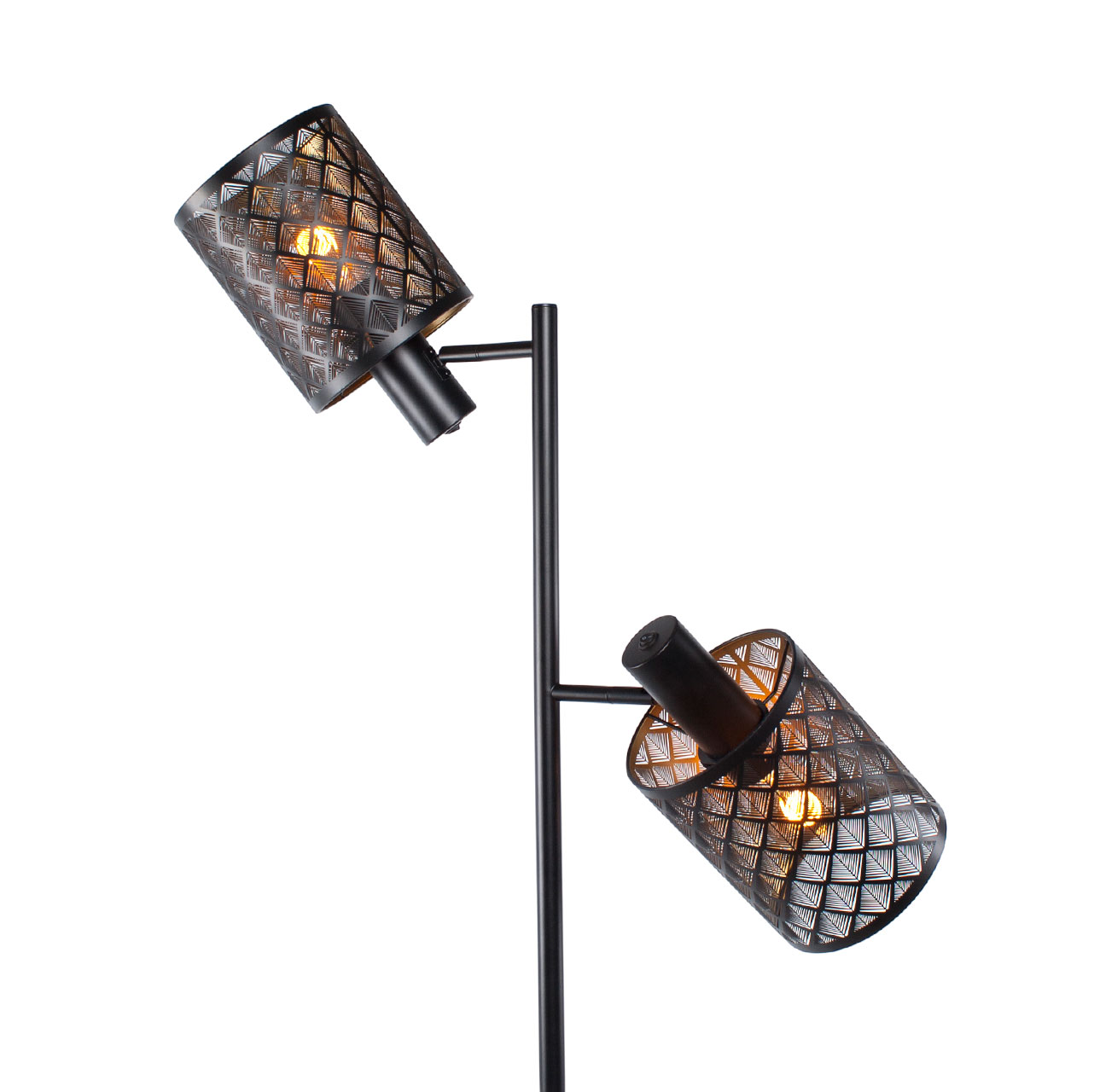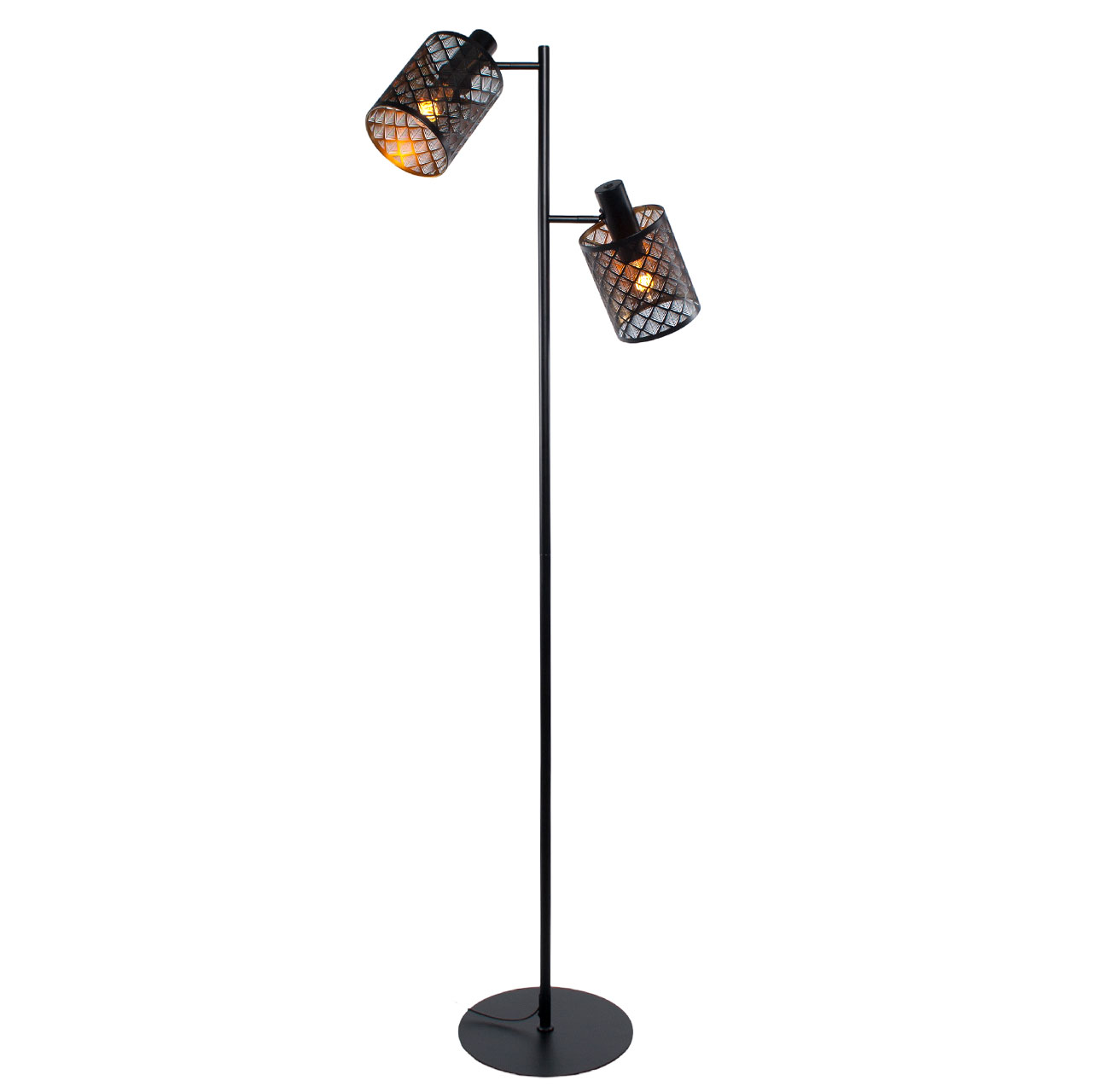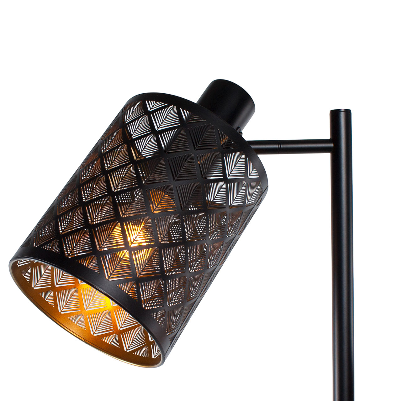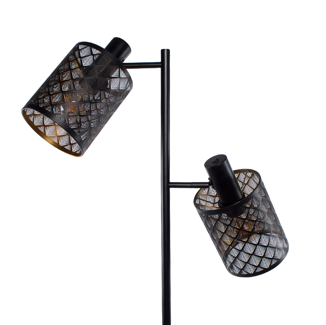 Deze moderne 2-lichts vloerlamp uit de Laser-serie combineert een strak design met sfeervolle verlichting. De twee opengewerkte kappen, vervaardigd met lasertechniek, zorgen voor een speels lichteffect. De combinatie van een zwarte buitenkant en een goudkleurige binnenkant geeft de lamp een luxe en warme uitstraling. Hierdoor past deze vloerlamp perfect in zowel moderne als industriële interieurs.