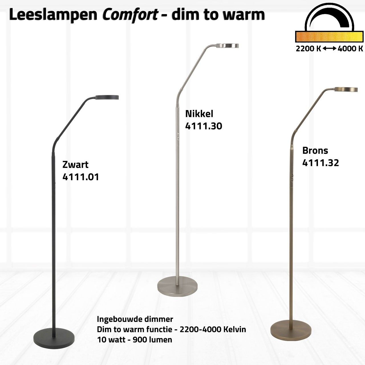 Deze dim to warm staande leeslamp is verkrijgbaar in mat zwart, nikkel of brons. Kijk voor andere kleuren naar het serie overzicht.