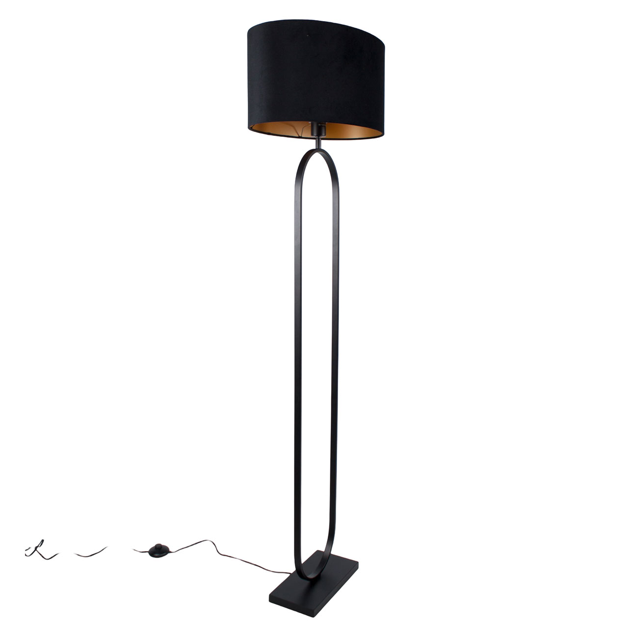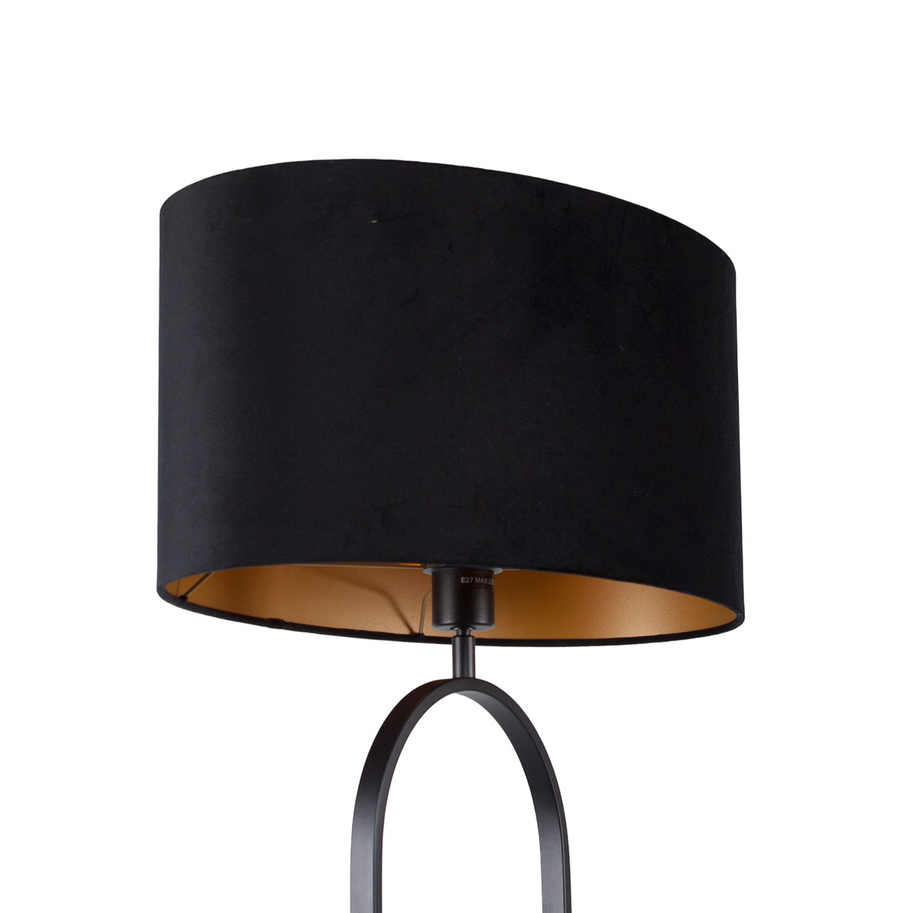 Zwarte vloerlamp Verona met ovale velours kap – Black on gold 50 cm